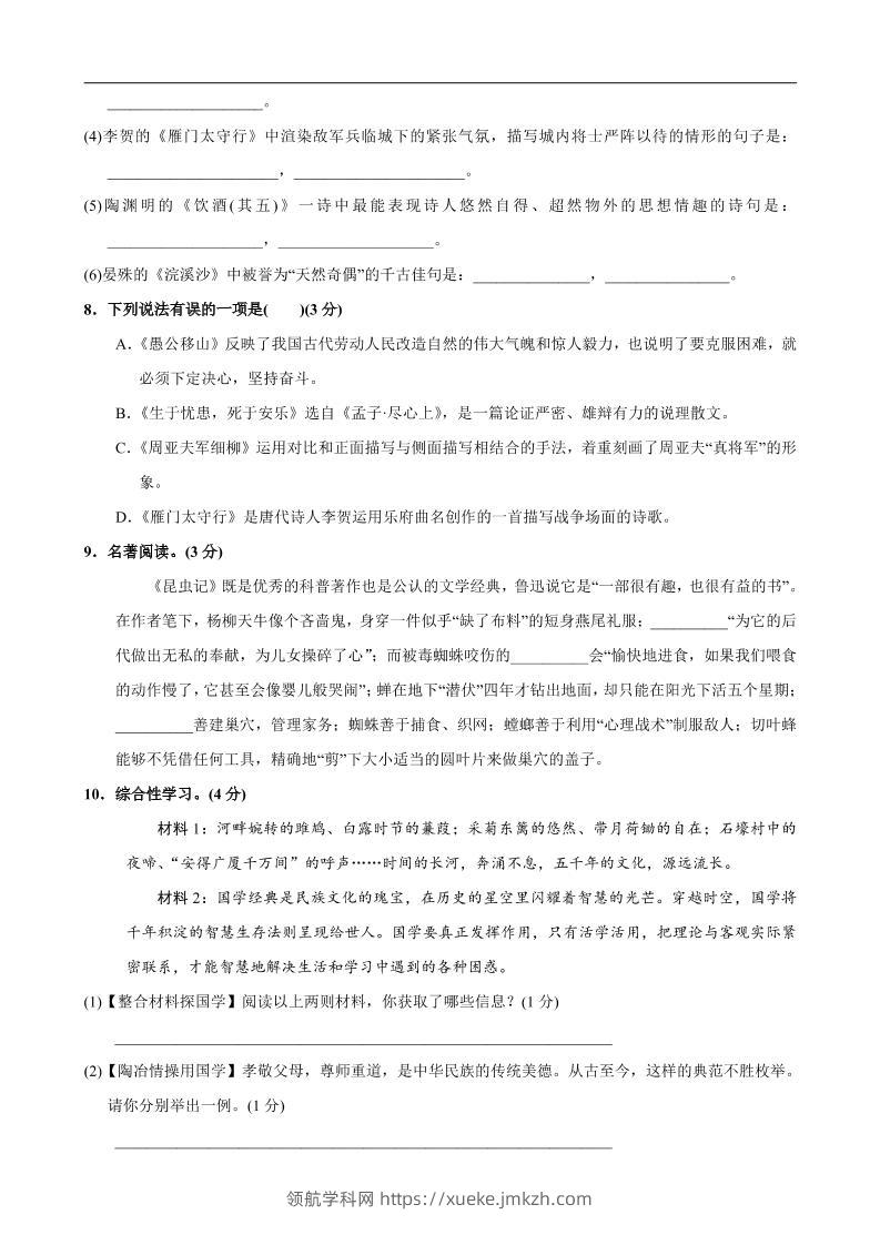 八年级上语文第6单元测试卷青禾老师8天前发布关注私信096465 ——预览已结束,还剩7页未读——开通会员后可免费下载高清完整文档 八年级上语文第6单元测试卷此内容为付费资源,请付费后查看领航币4.9年度会员免费永久会员免费立即购买您当前未登录!建议登陆后购买,可保存购买订单格式pdf页数9 页大小475.48 KB付费资源© 版权声明 1 本网站名称:领航学科网 2 本站永久网址:https://xueke.jmkzh.com/ 3 本网站的资料都来源于用户投稿,仅供大家学习与参考,如有侵权,请联系站长QQ进行删除处理。 4 本站一切资源不代表本站立场,并不代表本站赞同其观点和对其真实性负责。 5 本站一律禁止以任何方式发布或转载任何违法的相关信息,访客发现请向站长举报! THE END初中语文 喜欢就支持一下吧点赞65 分享QQ空间微博QQ好友海报分享复制链接收藏