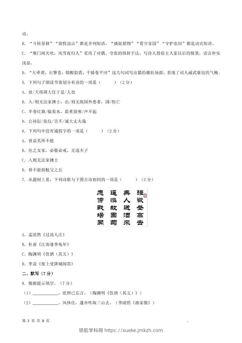 八年级上语文第六单元B卷提升卷青禾老师8天前发布关注私信08833 ——预览已结束,还剩23页未读——开通会员后可免费下载高清完整文档 八年级上语文第六单元B卷提升卷此内容为付费资源,请付费后查看领航币4.9年度会员免费永久会员免费立即购买您当前未登录!建议登陆后购买,可保存购买订单格式pdf页数25 页大小1.05 MB付费资源© 版权声明 1 本网站名称:领航学科网 2 本站永久网址:https://xueke.jmkzh.com/ 3 本网站的资料都来源于用户投稿,仅供大家学习与参考,如有侵权,请联系站长QQ进行删除处理。 4 本站一切资源不代表本站立场,并不代表本站赞同其观点和对其真实性负责。 5 本站一律禁止以任何方式发布或转载任何违法的相关信息,访客发现请向站长举报! THE END初中语文 喜欢就支持一下吧点赞33 分享QQ空间微博QQ好友海报分享复制链接收藏
