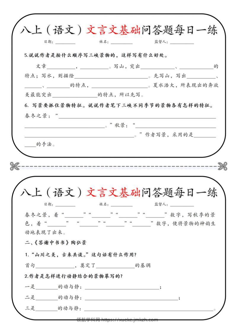 新八年级上语文基础问答题小纸条青禾老师7天前发布关注私信09370 ——预览已结束,还剩12页未读——开通会员后可免费下载高清完整文档 新八年级上语文基础问答题小纸条此内容为付费资源,请付费后查看领航币4.9年度会员免费永久会员免费立即购买您当前未登录!建议登陆后购买,可保存购买订单格式pdf页数14 页大小11.95 MB付费资源© 版权声明 1 本网站名称:领航学科网 2 本站永久网址:https://xueke.jmkzh.com/ 3 本网站的资料都来源于用户投稿,仅供大家学习与参考,如有侵权,请联系站长QQ进行删除处理。 4 本站一切资源不代表本站立场,并不代表本站赞同其观点和对其真实性负责。 5 本站一律禁止以任何方式发布或转载任何违法的相关信息,访客发现请向站长举报! THE END初中语文 喜欢就支持一下吧点赞70 分享QQ空间微博QQ好友海报分享复制链接收藏