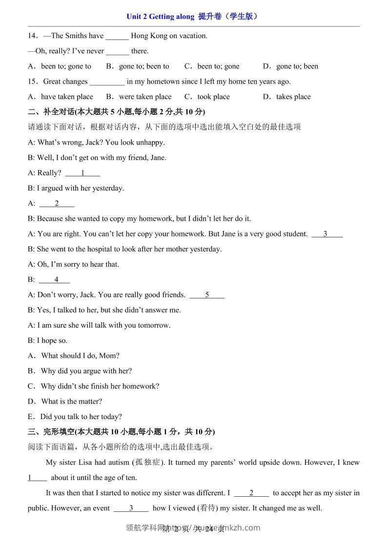 八年级上英语Unit2提升卷(外研版)青禾老师6天前发布关注私信092982 ——预览已结束,还剩22页未读——开通会员后可免费下载高清完整文档 八年级上英语Unit2提升卷(外研版)此内容为付费资源,请付费后查看领航币4.9年度会员免费永久会员免费立即购买您当前未登录!建议登陆后购买,可保存购买订单格式pdf页数24 页大小987.48 KB付费资源© 版权声明 1 本网站名称:领航学科网 2 本站永久网址:https://xueke.jmkzh.com/ 3 本网站的资料都来源于用户投稿,仅供大家学习与参考,如有侵权,请联系站长QQ进行删除处理。 4 本站一切资源不代表本站立场,并不代表本站赞同其观点和对其真实性负责。 5 本站一律禁止以任何方式发布或转载任何违法的相关信息,访客发现请向站长举报! THE END初中英语 喜欢就支持一下吧点赞82 分享QQ空间微博QQ好友海报分享复制链接收藏