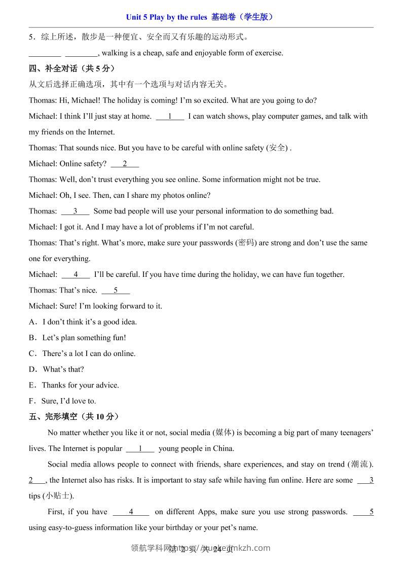 八年级上英语Unit5基础卷(外研版)青禾老师6天前发布关注私信037362 ——预览已结束,还剩22页未读——开通会员后可免费下载高清完整文档 八年级上英语Unit5基础卷(外研版)此内容为付费资源,请付费后查看领航币4.9年度会员免费永久会员免费立即购买您当前未登录!建议登陆后购买,可保存购买订单格式pdf页数24 页大小978.97 KB付费资源© 版权声明 1 本网站名称:领航学科网 2 本站永久网址:https://xueke.jmkzh.com/ 3 本网站的资料都来源于用户投稿,仅供大家学习与参考,如有侵权,请联系站长QQ进行删除处理。 4 本站一切资源不代表本站立场,并不代表本站赞同其观点和对其真实性负责。 5 本站一律禁止以任何方式发布或转载任何违法的相关信息,访客发现请向站长举报! THE END初中英语 喜欢就支持一下吧点赞62 分享QQ空间微博QQ好友海报分享复制链接收藏