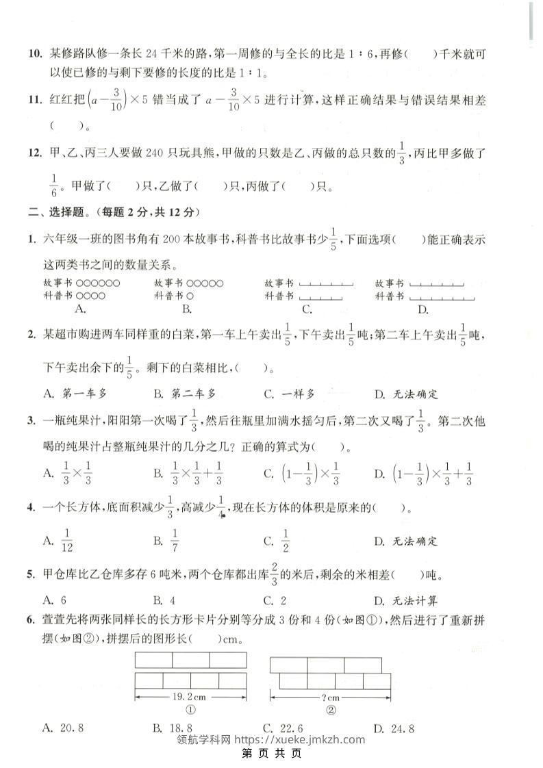 六年级上数学第五单元测试卷《苏教版》青禾老师5天前发布关注私信04679 ——预览已结束,还剩3页未读——开通会员后可免费下载高清完整文档 六年级上数学第五单元测试卷《苏教版》此内容为付费资源,请付费后查看领航币4.9年度会员免费永久会员免费立即购买您当前未登录!建议登陆后购买,可保存购买订单格式pdf页数5 页大小14.50 MB付费资源© 版权声明 1 本网站名称:领航学科网 2 本站永久网址:https://xueke.jmkzh.com/ 3 本网站的资料都来源于用户投稿,仅供大家学习与参考,如有侵权,请联系站长QQ进行删除处理。 4 本站一切资源不代表本站立场,并不代表本站赞同其观点和对其真实性负责。 5 本站一律禁止以任何方式发布或转载任何违法的相关信息,访客发现请向站长举报! THE END小学数学 喜欢就支持一下吧点赞79 分享QQ空间微博QQ好友海报分享复制链接收藏