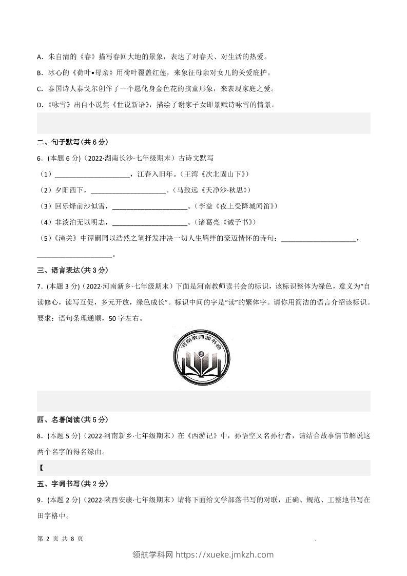 九年级上语文期末突破卷3青禾老师16小时前发布关注私信047089 ——预览已结束,还剩26页未读——开通会员后可免费下载高清完整文档 九年级上语文期末突破卷3此内容为付费资源,请付费后查看领航币4.9年度会员免费永久会员免费立即购买您当前未登录!建议登陆后购买,可保存购买订单格式pdf页数28 页大小1.33 MB付费资源© 版权声明 1 本网站名称:领航学科网 2 本站永久网址:https://xueke.jmkzh.com/ 3 本网站的资料都来源于用户投稿,仅供大家学习与参考,如有侵权,请联系站长QQ进行删除处理。 4 本站一切资源不代表本站立场,并不代表本站赞同其观点和对其真实性负责。 5 本站一律禁止以任何方式发布或转载任何违法的相关信息,访客发现请向站长举报! THE END初中语文 喜欢就支持一下吧点赞89 分享QQ空间微博QQ好友海报分享复制链接收藏