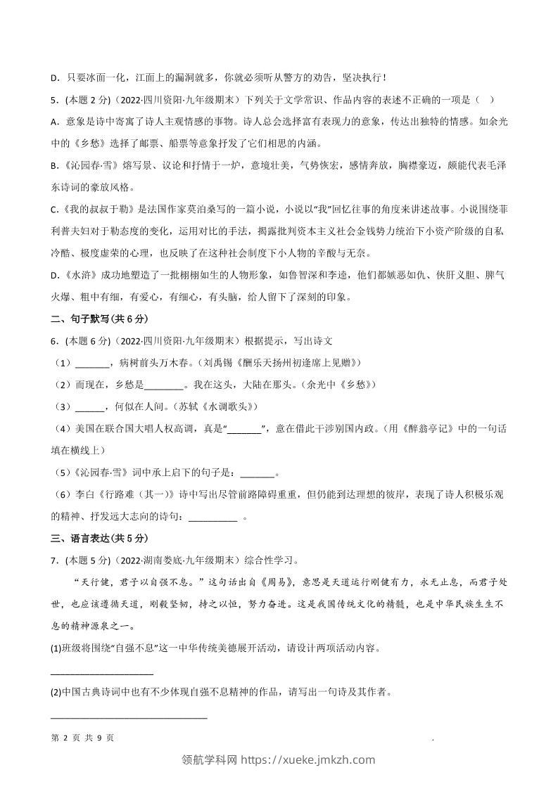 九年级上语文期末突破卷6青禾老师16小时前发布关注私信046936 ——预览已结束,还剩25页未读——开通会员后可免费下载高清完整文档 九年级上语文期末突破卷6此内容为付费资源,请付费后查看领航币4.9年度会员免费永久会员免费立即购买您当前未登录!建议登陆后购买,可保存购买订单格式pdf页数27 页大小1.35 MB付费资源© 版权声明 1 本网站名称:领航学科网 2 本站永久网址:https://xueke.jmkzh.com/ 3 本网站的资料都来源于用户投稿,仅供大家学习与参考,如有侵权,请联系站长QQ进行删除处理。 4 本站一切资源不代表本站立场,并不代表本站赞同其观点和对其真实性负责。 5 本站一律禁止以任何方式发布或转载任何违法的相关信息,访客发现请向站长举报! THE END初中语文 喜欢就支持一下吧点赞36 分享QQ空间微博QQ好友海报分享复制链接收藏