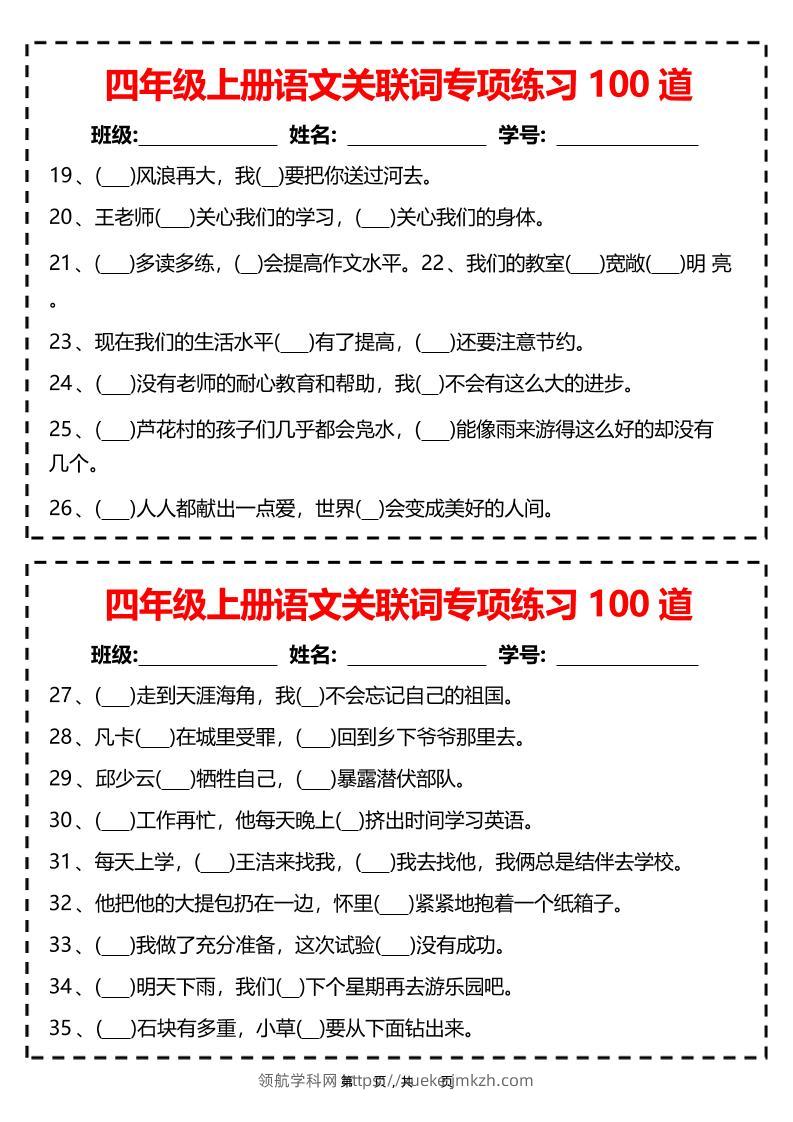 四上语文关联词专项练习100道(含答案12页)青禾老师昨天发布关注私信026038 ——预览已结束,还剩10页未读——开通会员后可免费下载高清完整文档 四上语文关联词专项练习100道(含答案12页)此内容为付费资源,请付费后查看领航币4.9年度会员免费永久会员免费立即购买您当前未登录!建议登陆后购买,可保存购买订单格式pdf页数12 页大小562.08 KB付费资源© 版权声明 1 本网站名称:领航学科网 2 本站永久网址:https://xueke.jmkzh.com/ 3 本网站的资料都来源于用户投稿,仅供大家学习与参考,如有侵权,请联系站长QQ进行删除处理。 4 本站一切资源不代表本站立场,并不代表本站赞同其观点和对其真实性负责。 5 本站一律禁止以任何方式发布或转载任何违法的相关信息,访客发现请向站长举报! THE END小学语文 喜欢就支持一下吧点赞38 分享QQ空间微博QQ好友海报分享复制链接收藏