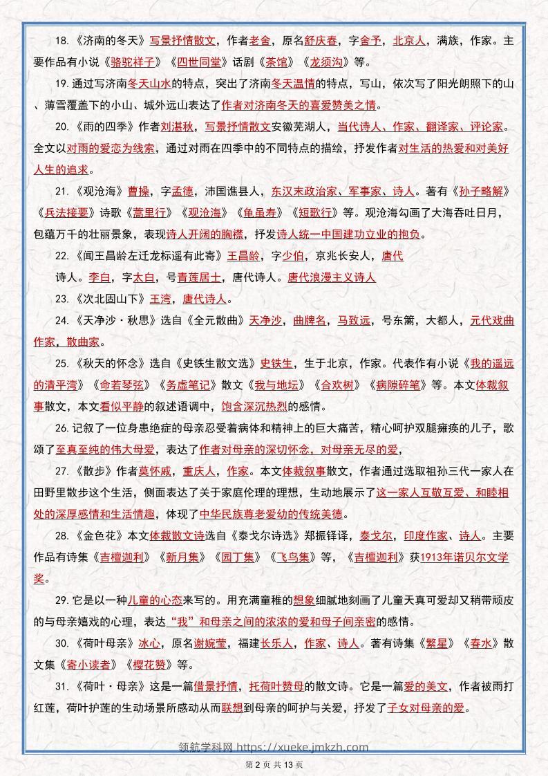 七年级上语文语文期末必考重点知识汇总青禾老师14天前发布关注私信037581 ——预览已结束,还剩11页未读——开通会员后可免费下载高清完整文档 七年级上语文语文期末必考重点知识汇总此内容为付费资源,请付费后查看领航币4.9年度会员免费永久会员免费立即购买您当前未登录!建议登陆后购买,可保存购买订单格式pdf页数13 页大小622.21 KB付费资源© 版权声明 1 本网站名称:领航学科网 2 本站永久网址:https://xueke.jmkzh.com/ 3 本网站的资料都来源于用户投稿,仅供大家学习与参考,如有侵权,请联系站长QQ进行删除处理。 4 本站一切资源不代表本站立场,并不代表本站赞同其观点和对其真实性负责。 5 本站一律禁止以任何方式发布或转载任何违法的相关信息,访客发现请向站长举报! THE END初中语文 喜欢就支持一下吧点赞81 分享QQ空间微博QQ好友海报分享复制链接收藏