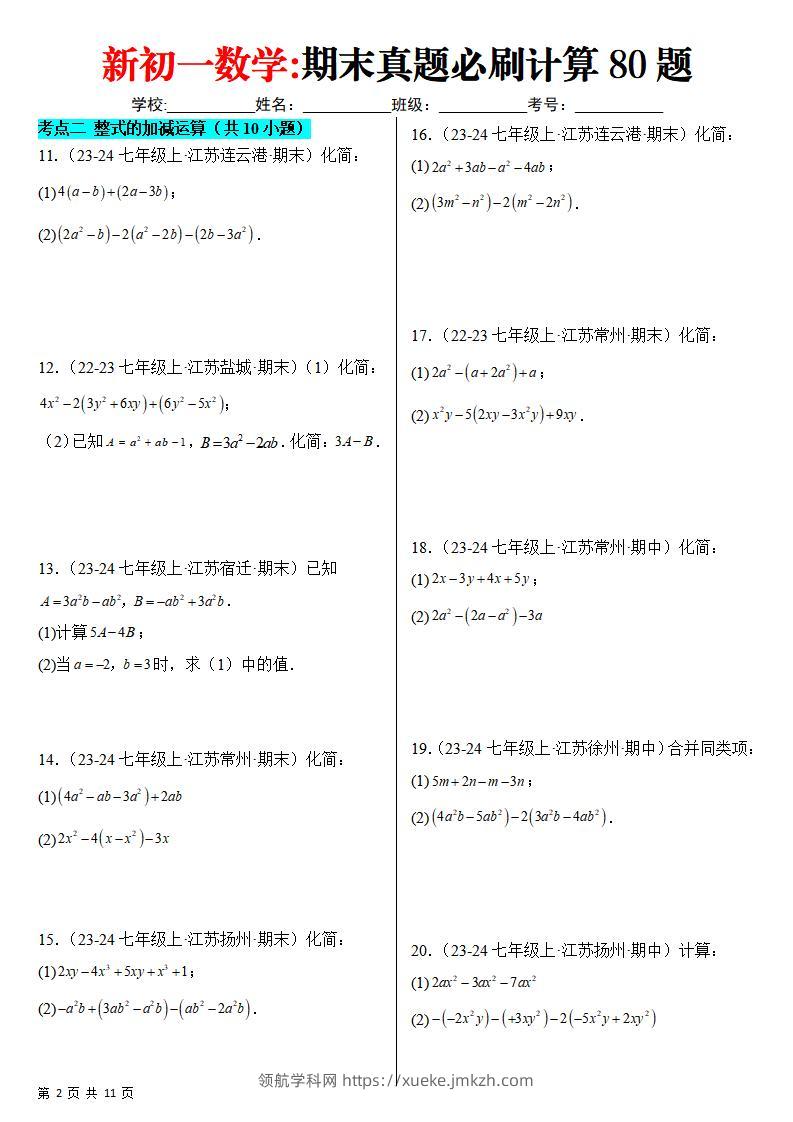 七年级上数学期末真题必刷计算80题(苏科版)青禾老师13天前发布关注私信063269 ——预览已结束,还剩66页未读——开通会员后可免费下载高清完整文档 七年级上数学期末真题必刷计算80题(苏科版)此内容为付费资源,请付费后查看领航币4.9年度会员免费永久会员免费立即购买您当前未登录!建议登陆后购买,可保存购买订单格式pdf页数68 页大小2.00 MB付费资源© 版权声明 1 本网站名称:领航学科网 2 本站永久网址:https://xueke.jmkzh.com/ 3 本网站的资料都来源于用户投稿,仅供大家学习与参考,如有侵权,请联系站长QQ进行删除处理。 4 本站一切资源不代表本站立场,并不代表本站赞同其观点和对其真实性负责。 5 本站一律禁止以任何方式发布或转载任何违法的相关信息,访客发现请向站长举报! THE END初中数学 喜欢就支持一下吧点赞69 分享QQ空间微博QQ好友海报分享复制链接收藏