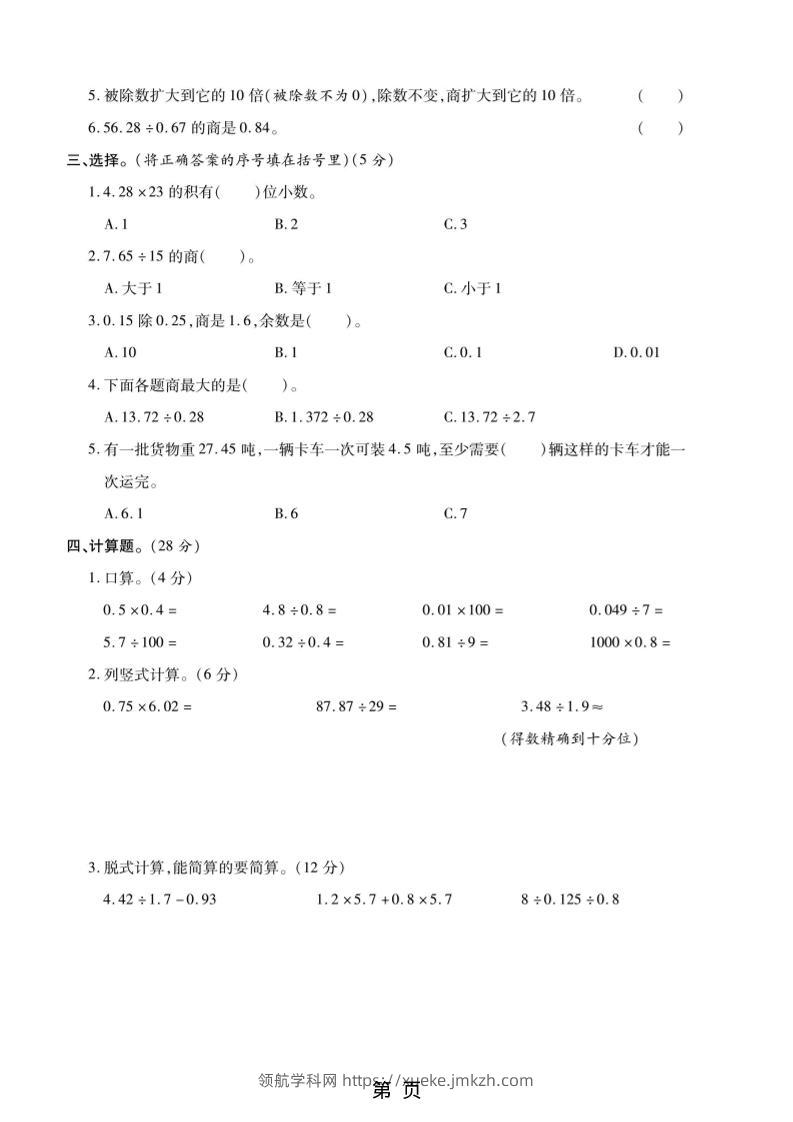 五年级上数学第五单元测试卷《苏教版》青禾老师5天前发布关注私信057185 ——预览已结束,还剩3页未读——开通会员后可免费下载高清完整文档 五年级上数学第五单元测试卷《苏教版》此内容为付费资源,请付费后查看领航币4.9年度会员免费永久会员免费立即购买您当前未登录!建议登陆后购买,可保存购买订单格式pdf页数5 页大小2.35 MB付费资源© 版权声明 1 本网站名称:领航学科网 2 本站永久网址:https://xueke.jmkzh.com/ 3 本网站的资料都来源于用户投稿,仅供大家学习与参考,如有侵权,请联系站长QQ进行删除处理。 4 本站一切资源不代表本站立场,并不代表本站赞同其观点和对其真实性负责。 5 本站一律禁止以任何方式发布或转载任何违法的相关信息,访客发现请向站长举报! THE END小学数学 喜欢就支持一下吧点赞85 分享QQ空间微博QQ好友海报分享复制链接收藏