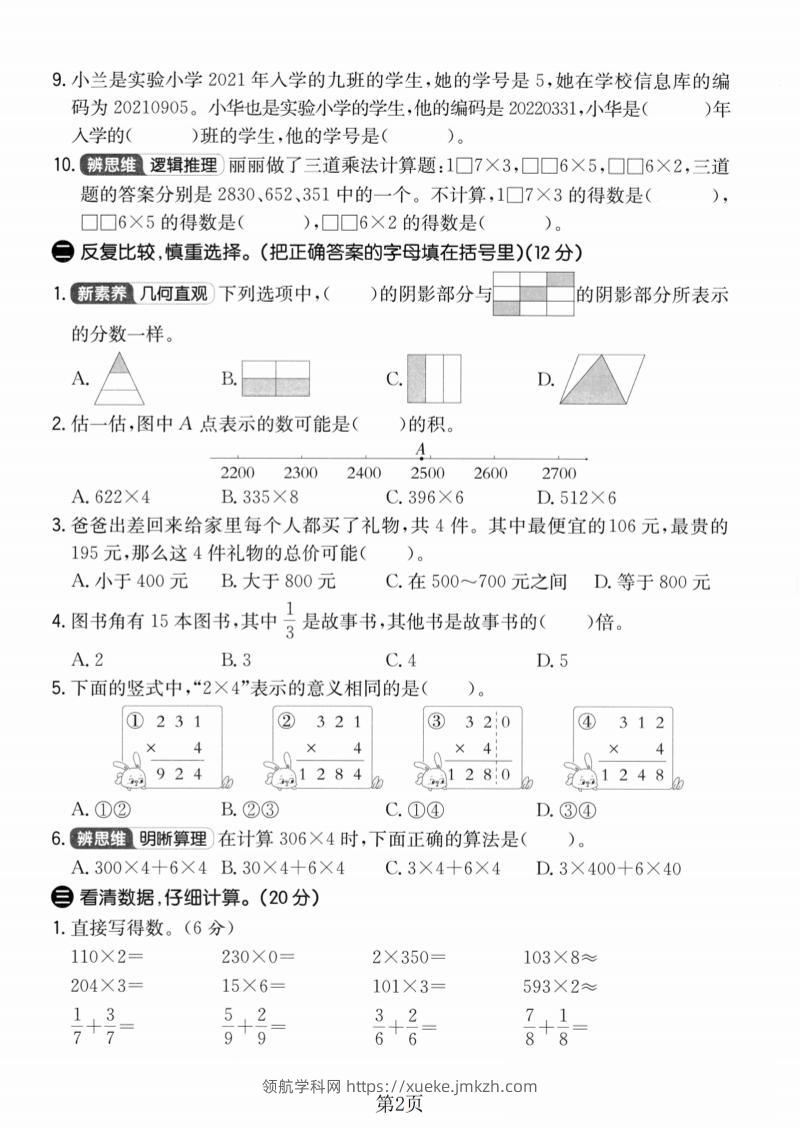 三年级上数学期末模拟测试卷4《人教版》青禾老师2个月前发布关注私信039596 ——预览已结束,还剩3页未读——开通会员后可免费下载高清完整文档 三年级上数学期末模拟测试卷4《人教版》此内容为付费资源,请付费后查看领航币4.9年度会员免费永久会员免费立即购买您当前未登录!建议登陆后购买,可保存购买订单格式pdf页数5 页大小3.55 MB付费资源© 版权声明 1 本网站名称:领航学科网 2 本站永久网址:https://xueke.jmkzh.com/ 3 本网站的资料都来源于用户投稿,仅供大家学习与参考,如有侵权,请联系站长QQ进行删除处理。 4 本站一切资源不代表本站立场,并不代表本站赞同其观点和对其真实性负责。 5 本站一律禁止以任何方式发布或转载任何违法的相关信息,访客发现请向站长举报! THE END小学数学 喜欢就支持一下吧点赞96 分享QQ空间微博QQ好友海报分享复制链接收藏