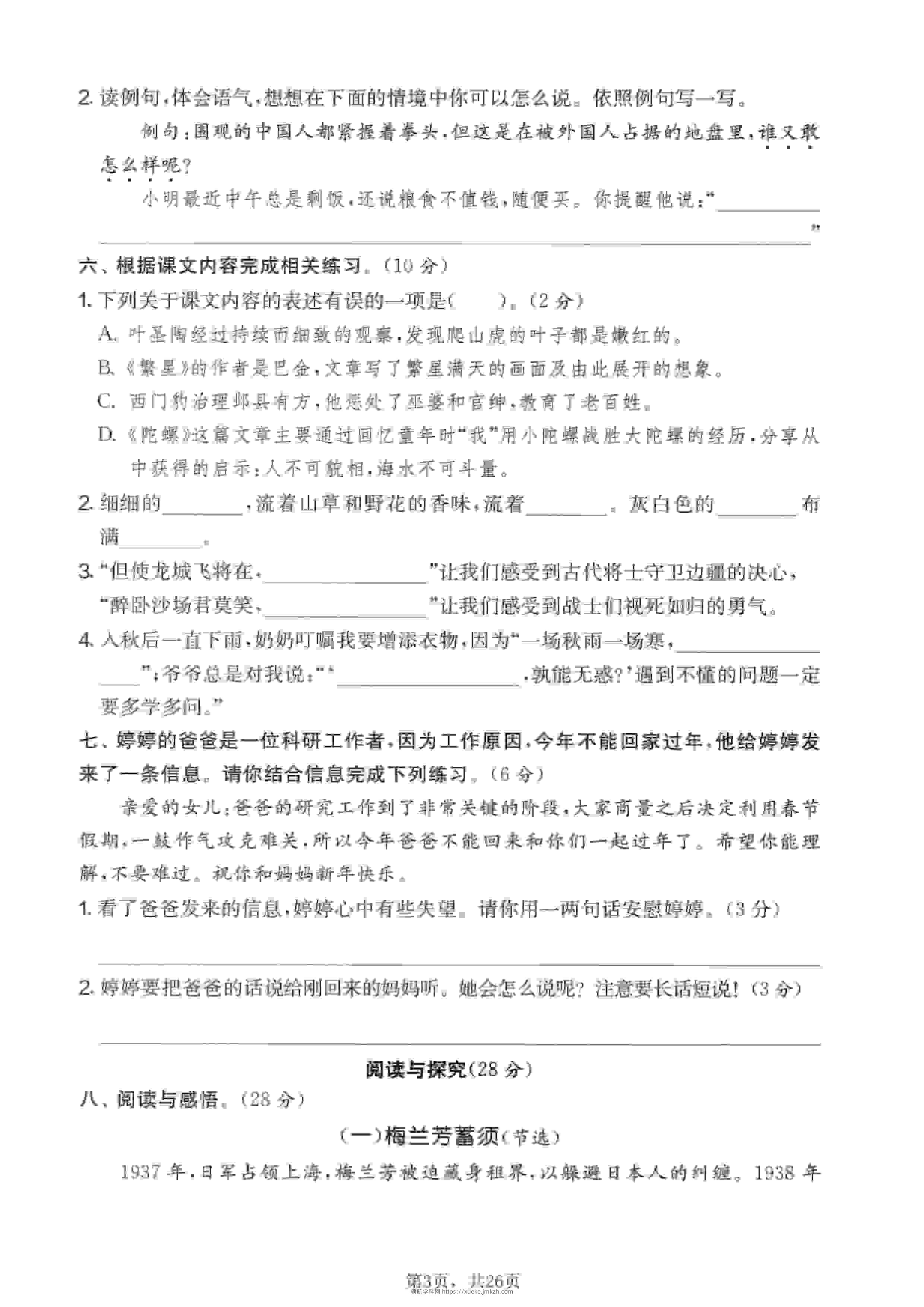 四年级上语文期末押题模拟测试卷全5套(含答案25页)青禾老师2个月前发布关注私信062588 ——预览已结束,还剩23页未读——开通会员后可免费下载高清完整文档 四年级上语文期末押题模拟测试卷全5套(含答案25页)此内容为付费资源,请付费后查看领航币4.9年度会员免费永久会员免费立即购买您当前未登录!建议登陆后购买,可保存购买订单格式pdf页数25 页大小16.42 MB付费资源© 版权声明 1 本网站名称:领航学科网 2 本站永久网址:https://xueke.jmkzh.com/ 3 本网站的资料都来源于用户投稿,仅供大家学习与参考,如有侵权,请联系站长QQ进行删除处理。 4 本站一切资源不代表本站立场,并不代表本站赞同其观点和对其真实性负责。 5 本站一律禁止以任何方式发布或转载任何违法的相关信息,访客发现请向站长举报! THE END小学语文 喜欢就支持一下吧点赞88 分享QQ空间微博QQ好友海报分享复制链接收藏