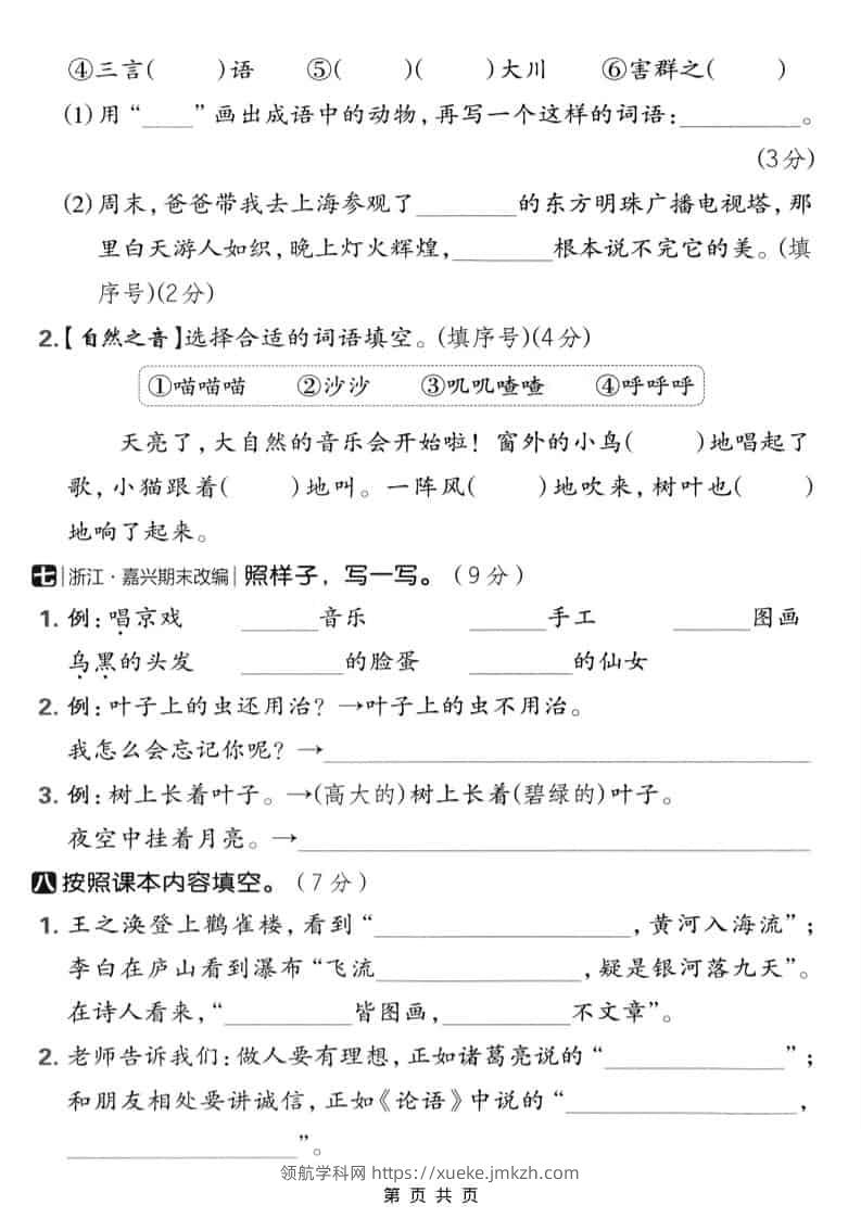 二年级上语文期末质量检测卷3青禾老师2个月前发布关注私信052100 ——预览已结束,还剩3页未读——开通会员后可免费下载高清完整文档 二年级上语文期末质量检测卷3此内容为付费资源,请付费后查看领航币4.9年度会员免费永久会员免费立即购买您当前未登录!建议登陆后购买,可保存购买订单格式pdf页数5 页大小6.60 MB付费资源© 版权声明 1 本网站名称:领航学科网 2 本站永久网址:https://xueke.jmkzh.com/ 3 本网站的资料都来源于用户投稿,仅供大家学习与参考,如有侵权,请联系站长QQ进行删除处理。 4 本站一切资源不代表本站立场,并不代表本站赞同其观点和对其真实性负责。 5 本站一律禁止以任何方式发布或转载任何违法的相关信息,访客发现请向站长举报! THE END小学语文 喜欢就支持一下吧点赞100 分享QQ空间微博QQ好友海报分享复制链接收藏