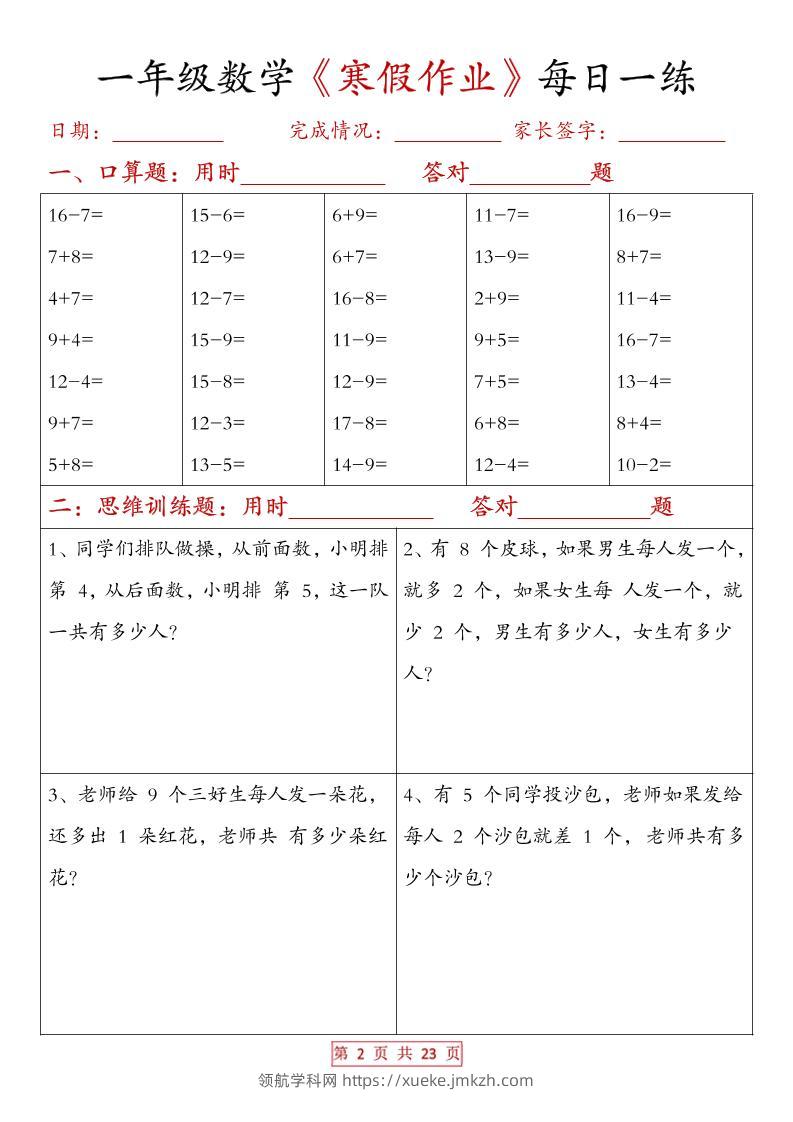 一年级上数学寒假作业每日一练(有答案)青禾老师1个月前发布关注私信07487 ——预览已结束,还剩21页未读——开通会员后可免费下载高清完整文档 一年级上数学寒假作业每日一练(有答案)此内容为付费资源,请付费后查看领航币4.9年度会员免费永久会员免费立即购买您当前未登录!建议登陆后购买,可保存购买订单格式pdf页数23 页大小447.41 KB付费资源© 版权声明 1 本网站名称:领航学科网 2 本站永久网址:https://xueke.jmkzh.com/ 3 本网站的资料都来源于用户投稿,仅供大家学习与参考,如有侵权,请联系站长QQ进行删除处理。 4 本站一切资源不代表本站立场,并不代表本站赞同其观点和对其真实性负责。 5 本站一律禁止以任何方式发布或转载任何违法的相关信息,访客发现请向站长举报! THE END小学数学 喜欢就支持一下吧点赞87 分享QQ空间微博QQ好友海报分享复制链接收藏