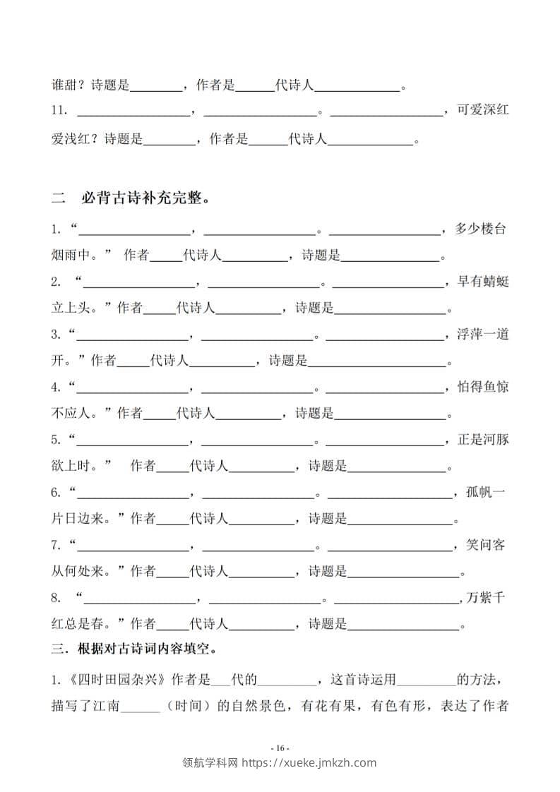 四年级下语文古诗词及相关拓展训练青禾老师1个月前发布关注私信058811 ——预览已结束,还剩4页未读——开通会员后可免费下载高清完整文档 四年级下语文古诗词及相关拓展训练此内容为付费资源,请付费后查看领航币4.9年度会员免费永久会员免费立即购买您当前未登录!建议登陆后购买,可保存购买订单格式pdf页数6 页大小842.64 KB付费资源© 版权声明 1 本网站名称:领航学科网 2 本站永久网址:https://xueke.jmkzh.com/ 3 本网站的资料都来源于用户投稿,仅供大家学习与参考,如有侵权,请联系站长QQ进行删除处理。 4 本站一切资源不代表本站立场,并不代表本站赞同其观点和对其真实性负责。 5 本站一律禁止以任何方式发布或转载任何违法的相关信息,访客发现请向站长举报! THE END小学语文 喜欢就支持一下吧点赞11 分享QQ空间微博QQ好友海报分享复制链接收藏