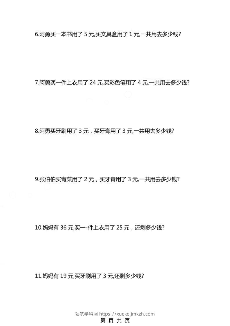 一年级下数学人民币应用题专项精选练习青禾老师1个月前发布关注私信016790 ——预览已结束,还剩2页未读——开通会员后可免费下载高清完整文档 一年级下数学人民币应用题专项精选练习此内容为付费资源,请付费后查看领航币4.9年度会员免费永久会员免费立即购买您当前未登录!建议登陆后购买,可保存购买订单格式pdf页数4 页大小752.71 KB付费资源© 版权声明 1 本网站名称:领航学科网 2 本站永久网址:https://xueke.jmkzh.com/ 3 本网站的资料都来源于用户投稿,仅供大家学习与参考,如有侵权,请联系站长QQ进行删除处理。 4 本站一切资源不代表本站立场,并不代表本站赞同其观点和对其真实性负责。 5 本站一律禁止以任何方式发布或转载任何违法的相关信息,访客发现请向站长举报! THE END小学数学 喜欢就支持一下吧点赞90 分享QQ空间微博QQ好友海报分享复制链接收藏