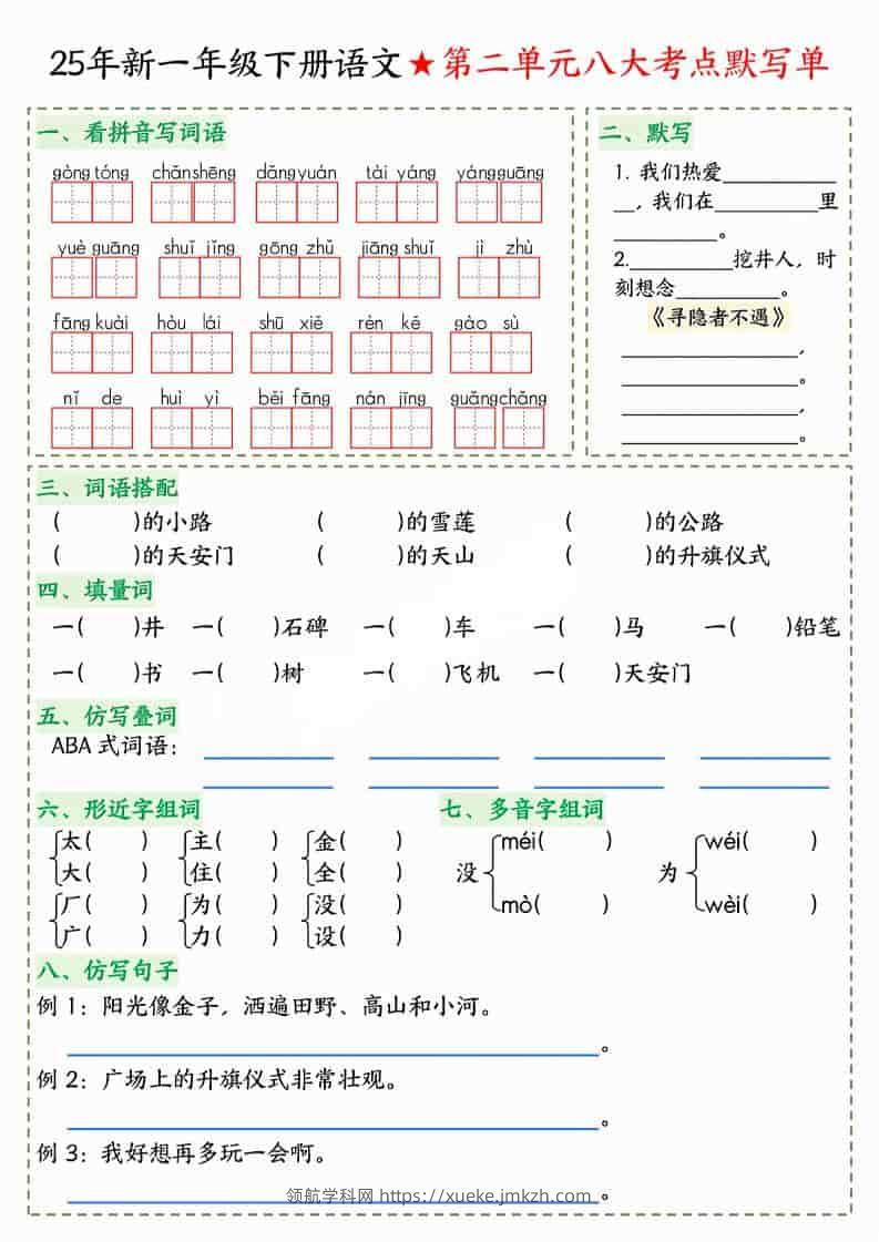 一年级下语文八大考点默写单青禾老师1个月前发布关注私信048125 ——预览已结束,还剩6页未读——开通会员后可免费下载高清完整文档 一年级下语文八大考点默写单此内容为付费资源,请付费后查看领航币4.9年度会员免费永久会员免费立即购买您当前未登录!建议登陆后购买,可保存购买订单格式pdf页数8 页大小3.82 MB付费资源© 版权声明 1 本网站名称:领航学科网 2 本站永久网址:https://xueke.jmkzh.com/ 3 本网站的资料都来源于用户投稿,仅供大家学习与参考,如有侵权,请联系站长QQ进行删除处理。 4 本站一切资源不代表本站立场,并不代表本站赞同其观点和对其真实性负责。 5 本站一律禁止以任何方式发布或转载任何违法的相关信息,访客发现请向站长举报! THE END小学语文 喜欢就支持一下吧点赞25 分享QQ空间微博QQ好友海报分享复制链接收藏