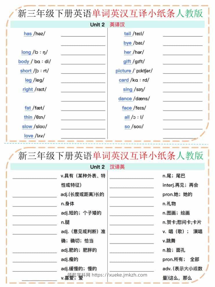 三年级下英语单词英汉互译小纸条《人教版》青禾老师1个月前发布关注私信03896 ——预览已结束,还剩4页未读——开通会员后可免费下载高清完整文档 三年级下英语单词英汉互译小纸条《人教版》此内容为付费资源,请付费后查看领航币4.9年度会员免费永久会员免费立即购买您当前未登录!建议登陆后购买,可保存购买订单格式pdf页数6 页大小1.81 MB付费资源© 版权声明 1 本网站名称:领航学科网 2 本站永久网址:https://xueke.jmkzh.com/ 3 本网站的资料都来源于用户投稿,仅供大家学习与参考,如有侵权,请联系站长QQ进行删除处理。 4 本站一切资源不代表本站立场,并不代表本站赞同其观点和对其真实性负责。 5 本站一律禁止以任何方式发布或转载任何违法的相关信息,访客发现请向站长举报! THE END小学英语 喜欢就支持一下吧点赞6 分享QQ空间微博QQ好友海报分享复制链接收藏