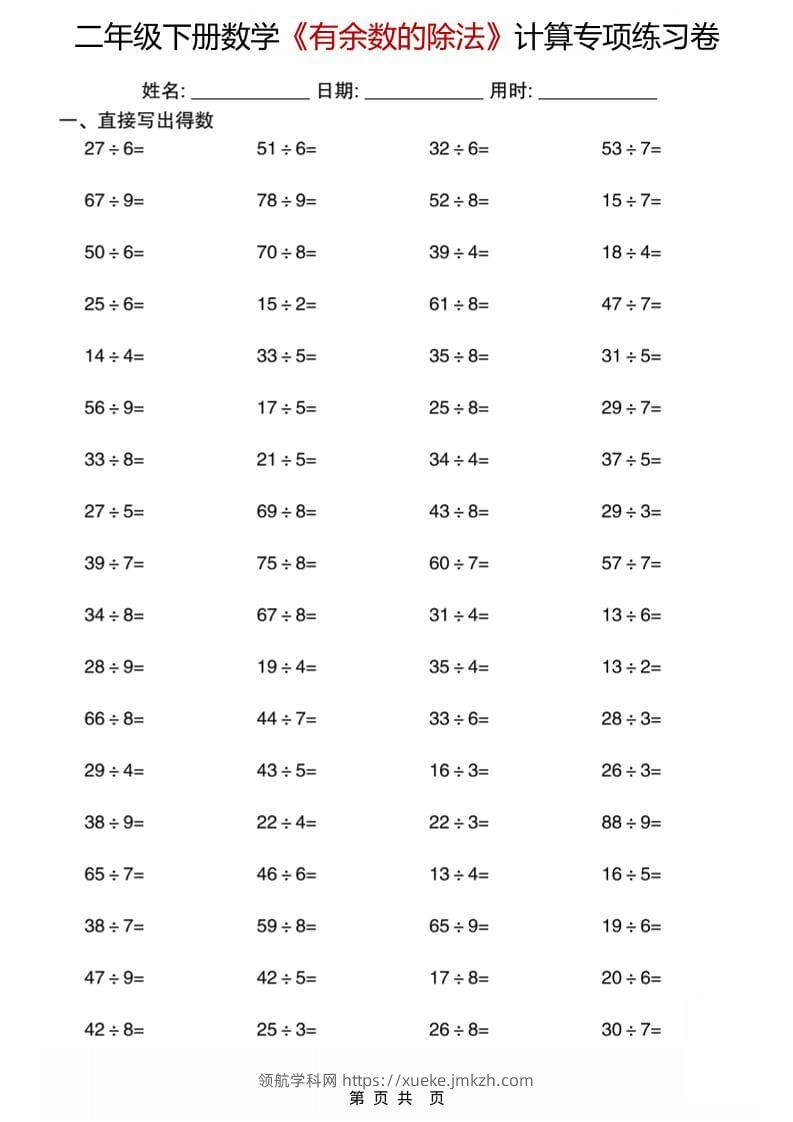 二年级下数学《有余数的除法》计算专项练习卷青禾老师1个月前发布关注私信084642 ——预览已结束,还剩28页未读——开通会员后可免费下载高清完整文档 二年级下数学《有余数的除法》计算专项练习卷此内容为付费资源,请付费后查看领航币4.9年度会员免费永久会员免费立即购买您当前未登录!建议登陆后购买,可保存购买订单格式pdf页数30 页大小4.92 MB付费资源© 版权声明 1 本网站名称:领航学科网 2 本站永久网址:https://xueke.jmkzh.com/ 3 本网站的资料都来源于用户投稿,仅供大家学习与参考,如有侵权,请联系站长QQ进行删除处理。 4 本站一切资源不代表本站立场,并不代表本站赞同其观点和对其真实性负责。 5 本站一律禁止以任何方式发布或转载任何违法的相关信息,访客发现请向站长举报! THE END小学数学 喜欢就支持一下吧点赞42 分享QQ空间微博QQ好友海报分享复制链接收藏