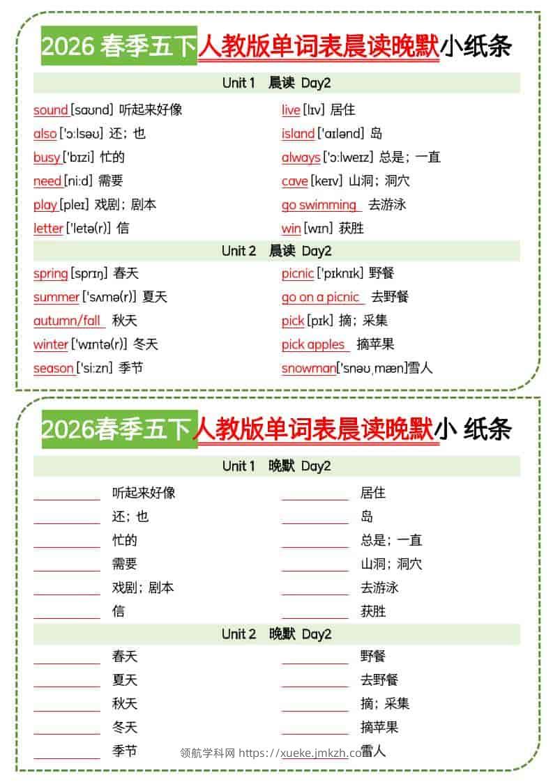 五年级下英语单词表晨读晚默小纸条《人教版PEP》青禾老师1个月前发布关注私信029882 ——预览已结束,还剩5页未读——开通会员后可免费下载高清完整文档 五年级下英语单词表晨读晚默小纸条《人教版PEP》此内容为付费资源,请付费后查看领航币4.9年度会员免费永久会员免费立即购买您当前未登录!建议登陆后购买,可保存购买订单格式pdf页数7 页大小260.50 KB付费资源© 版权声明 1 本网站名称:领航学科网 2 本站永久网址:https://xueke.jmkzh.com/ 3 本网站的资料都来源于用户投稿,仅供大家学习与参考,如有侵权,请联系站长QQ进行删除处理。 4 本站一切资源不代表本站立场,并不代表本站赞同其观点和对其真实性负责。 5 本站一律禁止以任何方式发布或转载任何违法的相关信息,访客发现请向站长举报! THE END小学英语 喜欢就支持一下吧点赞82 分享QQ空间微博QQ好友海报分享复制链接收藏