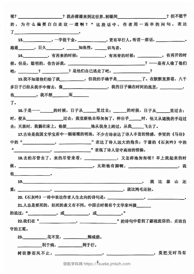 六年级下语文期末必考按课文内容填空青禾老师1个月前发布关注私信014782 ——预览已结束,还剩7页未读——开通会员后可免费下载高清完整文档 六年级下语文期末必考按课文内容填空此内容为付费资源,请付费后查看领航币4.9年度会员免费永久会员免费立即购买您当前未登录!建议登陆后购买,可保存购买订单格式pdf页数9 页大小5.38 MB付费资源© 版权声明 1 本网站名称:领航学科网 2 本站永久网址:https://xueke.jmkzh.com/ 3 本网站的资料都来源于用户投稿,仅供大家学习与参考,如有侵权,请联系站长QQ进行删除处理。 4 本站一切资源不代表本站立场,并不代表本站赞同其观点和对其真实性负责。 5 本站一律禁止以任何方式发布或转载任何违法的相关信息,访客发现请向站长举报! THE END小学语文 喜欢就支持一下吧点赞82 分享QQ空间微博QQ好友海报分享复制链接收藏