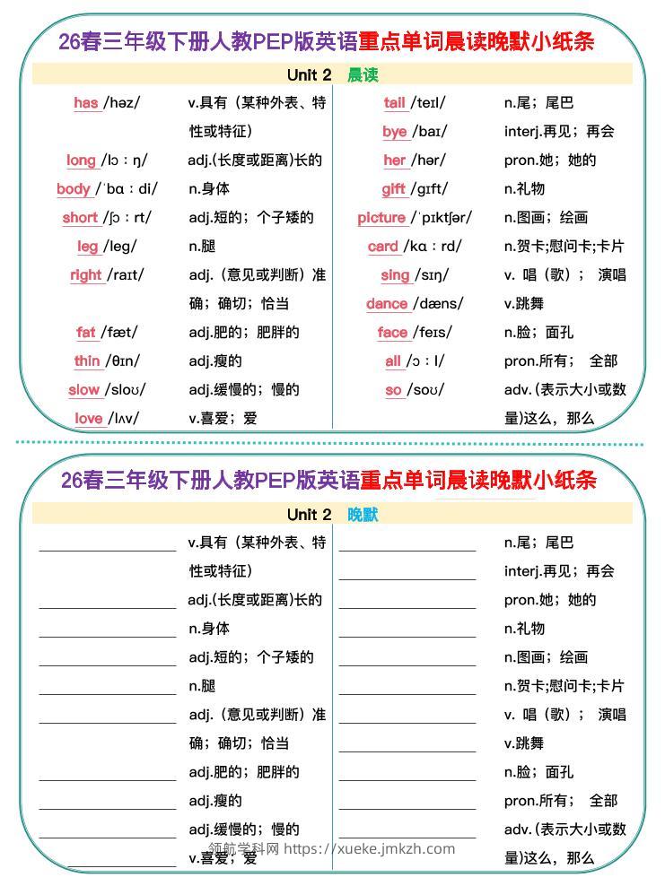 新三下人教pep英语单词晨读晚默小纸条青禾老师1个月前发布关注私信082221 ——预览已结束,还剩4页未读——开通会员后可免费下载高清完整文档 新三下人教pep英语单词晨读晚默小纸条此内容为付费资源,请付费后查看领航币4.9年度会员免费永久会员免费立即购买您当前未登录!建议登陆后购买,可保存购买订单格式pdf页数6 页大小646.17 KB付费资源© 版权声明 1 本网站名称:领航学科网 2 本站永久网址:https://xueke.jmkzh.com/ 3 本网站的资料都来源于用户投稿,仅供大家学习与参考,如有侵权,请联系站长QQ进行删除处理。 4 本站一切资源不代表本站立场,并不代表本站赞同其观点和对其真实性负责。 5 本站一律禁止以任何方式发布或转载任何违法的相关信息,访客发现请向站长举报! THE END小学英语 喜欢就支持一下吧点赞21 分享QQ空间微博QQ好友海报分享复制链接收藏