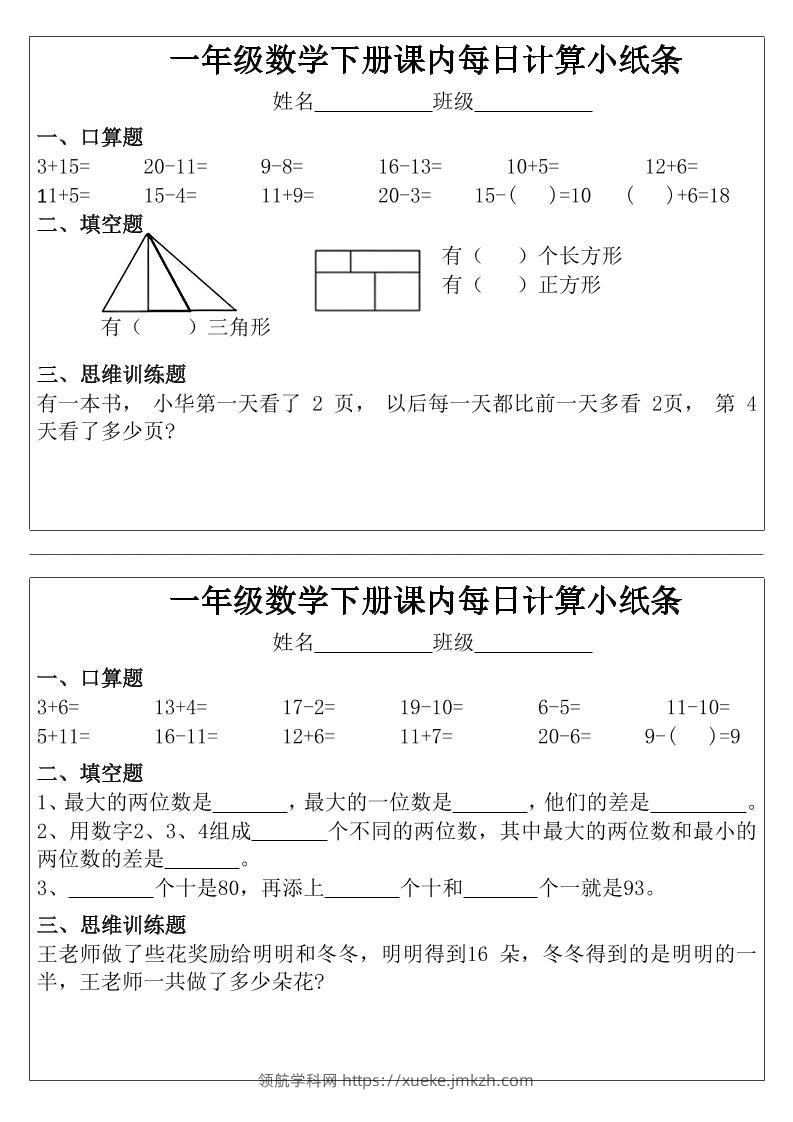 一年级下数学课内每日计算小纸条青禾老师1个月前发布关注私信095438 ——预览已结束,还剩9页未读——开通会员后可免费下载高清完整文档 一年级下数学课内每日计算小纸条此内容为付费资源,请付费后查看领航币4.9年度会员免费永久会员免费立即购买您当前未登录!建议登陆后购买,可保存购买订单格式pdf页数11 页大小2.28 MB付费资源© 版权声明 1 本网站名称:领航学科网 2 本站永久网址:https://xueke.jmkzh.com/ 3 本网站的资料都来源于用户投稿,仅供大家学习与参考,如有侵权,请联系站长QQ进行删除处理。 4 本站一切资源不代表本站立场,并不代表本站赞同其观点和对其真实性负责。 5 本站一律禁止以任何方式发布或转载任何违法的相关信息,访客发现请向站长举报! THE END小学数学 喜欢就支持一下吧点赞38 分享QQ空间微博QQ好友海报分享复制链接收藏