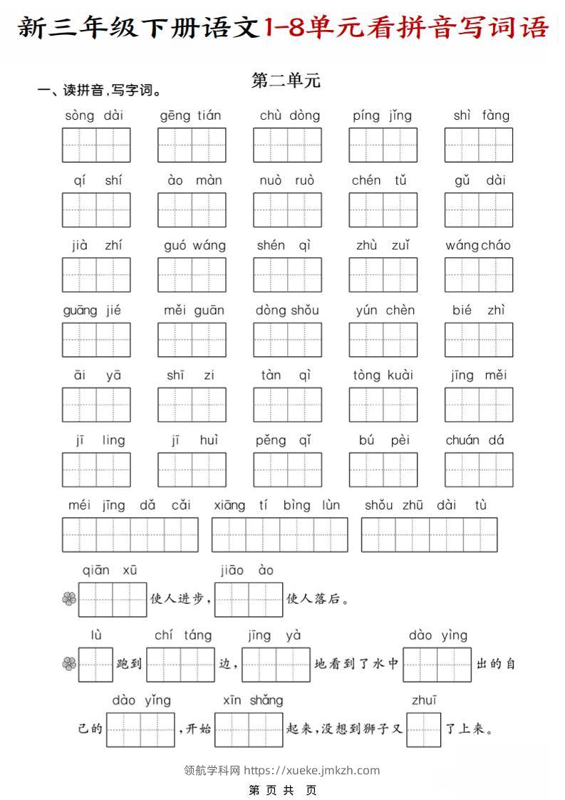 三年级下语文1-8单元看拼音写词语青禾老师40天前发布关注私信028011 ——预览已结束,还剩8页未读——开通会员后可免费下载高清完整文档 三年级下语文1-8单元看拼音写词语此内容为付费资源,请付费后查看领航币4.9年度会员免费永久会员免费立即购买您当前未登录!建议登陆后购买,可保存购买订单格式pdf页数10 页大小3.95 MB付费资源© 版权声明 1 本网站名称:领航学科网 2 本站永久网址:https://xueke.jmkzh.com/ 3 本网站的资料都来源于用户投稿,仅供大家学习与参考,如有侵权,请联系站长QQ进行删除处理。 4 本站一切资源不代表本站立场,并不代表本站赞同其观点和对其真实性负责。 5 本站一律禁止以任何方式发布或转载任何违法的相关信息,访客发现请向站长举报! THE END小学语文 喜欢就支持一下吧点赞11 分享QQ空间微博QQ好友海报分享复制链接收藏