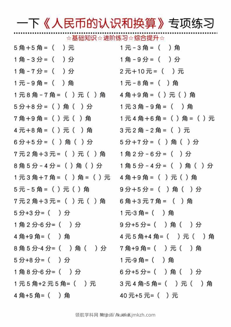 一年级下数学《人民币的认识和换算》专项训练青禾老师38天前发布关注私信030293 ——预览已结束,还剩13页未读——开通会员后可免费下载高清完整文档 一年级下数学《人民币的认识和换算》专项训练此内容为付费资源,请付费后查看领航币4.9年度会员免费永久会员免费立即购买您当前未登录!建议登陆后购买,可保存购买订单格式pdf页数15 页大小3.66 MB付费资源© 版权声明 1 本网站名称:领航学科网 2 本站永久网址:https://xueke.jmkzh.com/ 3 本网站的资料都来源于用户投稿,仅供大家学习与参考,如有侵权,请联系站长QQ进行删除处理。 4 本站一切资源不代表本站立场,并不代表本站赞同其观点和对其真实性负责。 5 本站一律禁止以任何方式发布或转载任何违法的相关信息,访客发现请向站长举报! THE END小学数学 喜欢就支持一下吧点赞93 分享QQ空间微博QQ好友海报分享复制链接收藏
