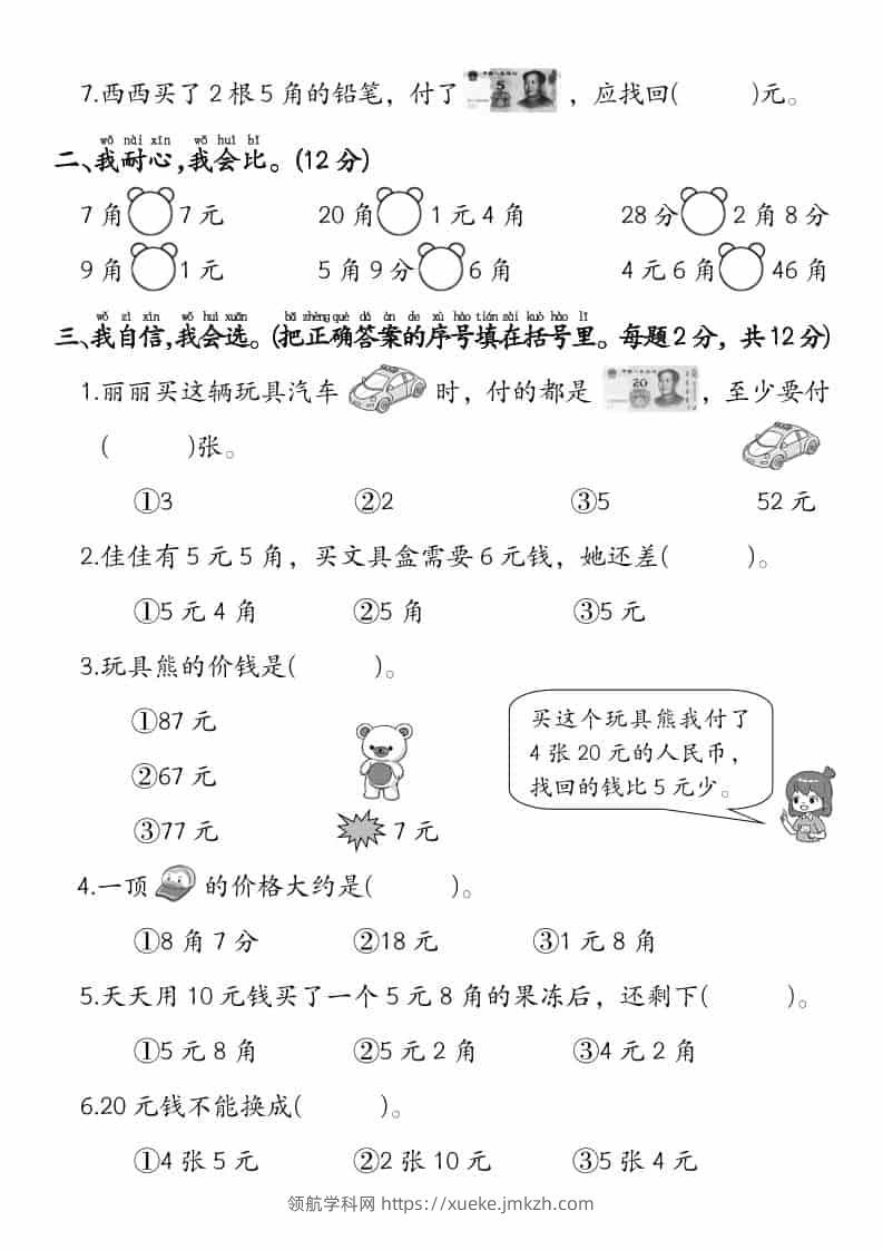 一年级下数学《人民币》专项检测卷青禾老师34天前发布关注私信090135 ——预览已结束,还剩2页未读——开通会员后可免费下载高清完整文档 一年级下数学《人民币》专项检测卷此内容为付费资源,请付费后查看领航币4.9年度会员免费永久会员免费立即购买您当前未登录!建议登陆后购买,可保存购买订单格式pdf页数4 页大小1.09 MB付费资源© 版权声明 1 本网站名称:领航学科网 2 本站永久网址:https://xueke.jmkzh.com/ 3 本网站的资料都来源于用户投稿,仅供大家学习与参考,如有侵权,请联系站长QQ进行删除处理。 4 本站一切资源不代表本站立场,并不代表本站赞同其观点和对其真实性负责。 5 本站一律禁止以任何方式发布或转载任何违法的相关信息,访客发现请向站长举报! THE END小学数学 喜欢就支持一下吧点赞35 分享QQ空间微博QQ好友海报分享复制链接收藏