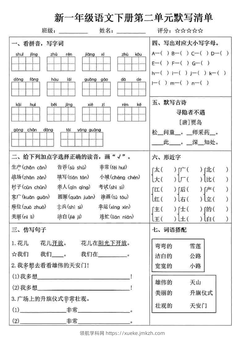 一年级下语文1-8单元默写清单青禾老师33天前发布关注私信080818 ——预览已结束,还剩14页未读——开通会员后可免费下载高清完整文档 一年级下语文1-8单元默写清单此内容为付费资源,请付费后查看领航币4.9年度会员免费永久会员免费立即购买您当前未登录!建议登陆后购买,可保存购买订单格式pdf页数16 页大小6.63 MB付费资源© 版权声明 1 本网站名称:领航学科网 2 本站永久网址:https://xueke.jmkzh.com/ 3 本网站的资料都来源于用户投稿,仅供大家学习与参考,如有侵权,请联系站长QQ进行删除处理。 4 本站一切资源不代表本站立场,并不代表本站赞同其观点和对其真实性负责。 5 本站一律禁止以任何方式发布或转载任何违法的相关信息,访客发现请向站长举报! THE END小学语文 喜欢就支持一下吧点赞18 分享QQ空间微博QQ好友海报分享复制链接收藏