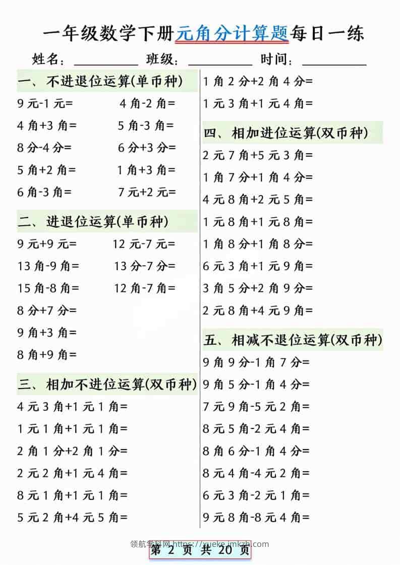 一年级下数学元角分计算题每日一练青禾老师31天前发布关注私信026753 ——预览已结束,还剩18页未读——开通会员后可免费下载高清完整文档 一年级下数学元角分计算题每日一练此内容为付费资源,请付费后查看领航币4.9年度会员免费永久会员免费立即购买您当前未登录!建议登陆后购买,可保存购买订单格式pdf页数20 页大小9.52 MB付费资源© 版权声明 1 本网站名称:领航学科网 2 本站永久网址:https://xueke.jmkzh.com/ 3 本网站的资料都来源于用户投稿,仅供大家学习与参考,如有侵权,请联系站长QQ进行删除处理。 4 本站一切资源不代表本站立场,并不代表本站赞同其观点和对其真实性负责。 5 本站一律禁止以任何方式发布或转载任何违法的相关信息,访客发现请向站长举报! THE END小学数学 喜欢就支持一下吧点赞53 分享QQ空间微博QQ好友海报分享复制链接收藏