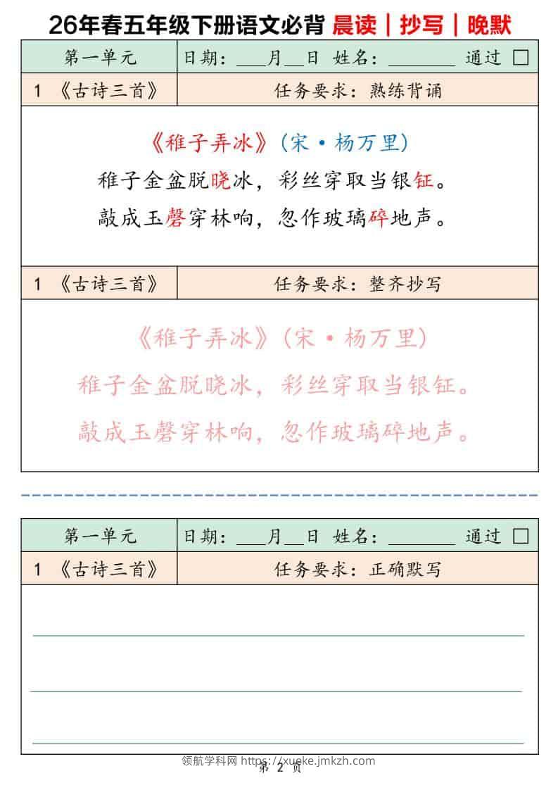 五年级下语文必背晨读抄写晚默青禾老师31天前发布关注私信016532 ——预览已结束,还剩14页未读——开通会员后可免费下载高清完整文档 五年级下语文必背晨读抄写晚默此内容为付费资源,请付费后查看领航币4.9年度会员免费永久会员免费立即购买您当前未登录!建议登陆后购买,可保存购买订单格式pdf页数16 页大小176.21 KB付费资源© 版权声明 1 本网站名称:领航学科网 2 本站永久网址:https://xueke.jmkzh.com/ 3 本网站的资料都来源于用户投稿,仅供大家学习与参考,如有侵权,请联系站长QQ进行删除处理。 4 本站一切资源不代表本站立场,并不代表本站赞同其观点和对其真实性负责。 5 本站一律禁止以任何方式发布或转载任何违法的相关信息,访客发现请向站长举报! THE END小学语文 喜欢就支持一下吧点赞32 分享QQ空间微博QQ好友海报分享复制链接收藏