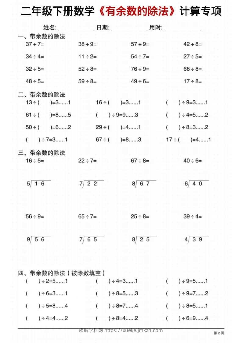 二年级下数学《有余数的除法》计算专项1青禾老师28天前发布关注私信085675 ——预览已结束,还剩28页未读——开通会员后可免费下载高清完整文档 二年级下数学《有余数的除法》计算专项1此内容为付费资源,请付费后查看领航币4.9年度会员免费永久会员免费立即购买您当前未登录!建议登陆后购买,可保存购买订单格式pdf页数30 页大小7.93 MB付费资源© 版权声明 1 本网站名称:领航学科网 2 本站永久网址:https://xueke.jmkzh.com/ 3 本网站的资料都来源于用户投稿,仅供大家学习与参考,如有侵权,请联系站长QQ进行删除处理。 4 本站一切资源不代表本站立场,并不代表本站赞同其观点和对其真实性负责。 5 本站一律禁止以任何方式发布或转载任何违法的相关信息,访客发现请向站长举报! THE END小学数学 喜欢就支持一下吧点赞75 分享QQ空间微博QQ好友海报分享复制链接收藏