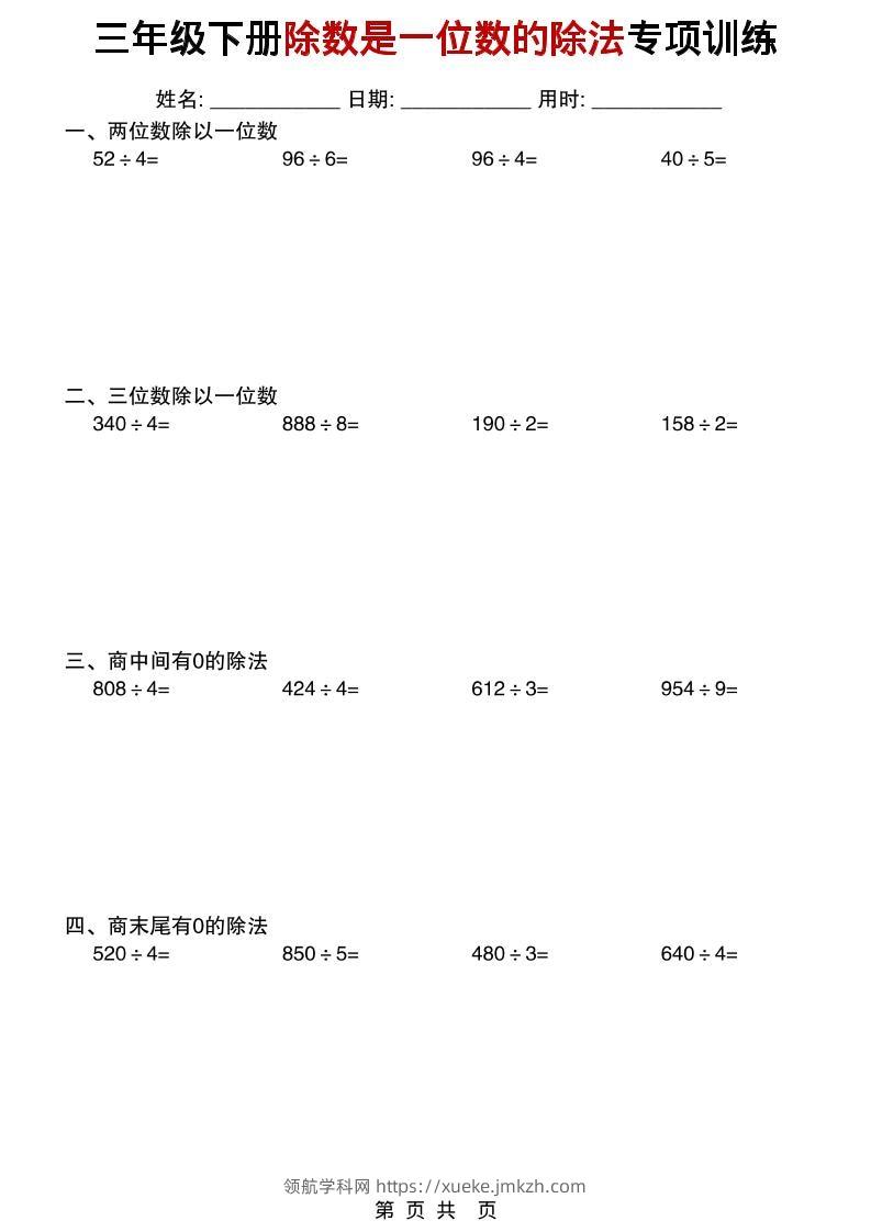 三年级下数学除数是一位数的除法专项训练青禾老师21天前发布关注私信022888 ——预览已结束,还剩38页未读——开通会员后可免费下载高清完整文档 三年级下数学除数是一位数的除法专项训练此内容为付费资源,请付费后查看领航币4.9年度会员免费永久会员免费立即购买您当前未登录!建议登陆后购买,可保存购买订单格式pdf页数40 页大小166.31 KB付费资源© 版权声明 1 本网站名称:领航学科网 2 本站永久网址:https://xueke.jmkzh.com/ 3 本网站的资料都来源于用户投稿,仅供大家学习与参考,如有侵权,请联系站长QQ进行删除处理。 4 本站一切资源不代表本站立场,并不代表本站赞同其观点和对其真实性负责。 5 本站一律禁止以任何方式发布或转载任何违法的相关信息,访客发现请向站长举报! THE END小学数学 喜欢就支持一下吧点赞88 分享QQ空间微博QQ好友海报分享复制链接收藏