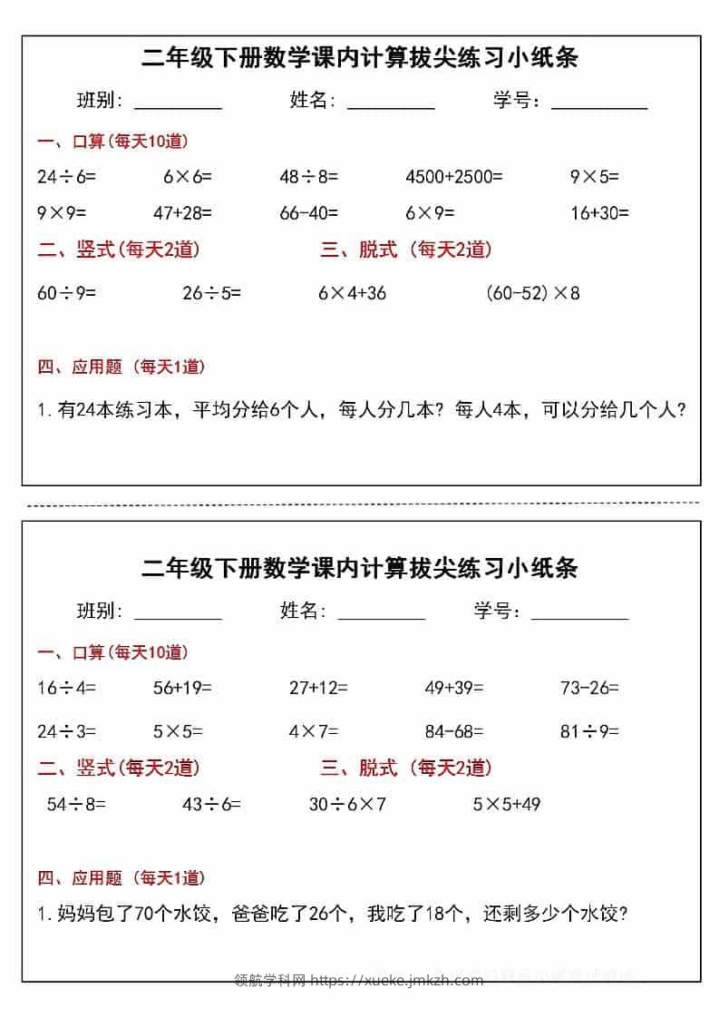 二年级下数学课内计算拔尖练习小纸条(15页30条)青禾老师21天前发布关注私信034216 ——预览已结束,还剩13页未读——开通会员后可免费下载高清完整文档 二年级下数学课内计算拔尖练习小纸条(15页30条)此内容为付费资源,请付费后查看领航币4.9年度会员免费永久会员免费立即购买您当前未登录!建议登陆后购买,可保存购买订单格式pdf页数15 页大小9.62 MB付费资源© 版权声明 1 本网站名称:领航学科网 2 本站永久网址:https://xueke.jmkzh.com/ 3 本网站的资料都来源于用户投稿,仅供大家学习与参考,如有侵权,请联系站长QQ进行删除处理。 4 本站一切资源不代表本站立场,并不代表本站赞同其观点和对其真实性负责。 5 本站一律禁止以任何方式发布或转载任何违法的相关信息,访客发现请向站长举报! THE END小学数学 喜欢就支持一下吧点赞16 分享QQ空间微博QQ好友海报分享复制链接收藏
