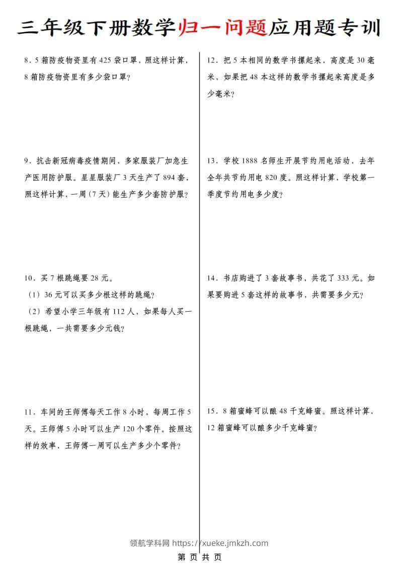 三年级下数学归一问题应用题专训青禾老师20天前发布关注私信034395 ——预览已结束,还剩4页未读——开通会员后可免费下载高清完整文档 三年级下数学归一问题应用题专训此内容为付费资源,请付费后查看领航币4.9年度会员免费永久会员免费立即购买您当前未登录!建议登陆后购买,可保存购买订单格式pdf页数6 页大小5.43 MB付费资源© 版权声明 1 本网站名称:领航学科网 2 本站永久网址:https://xueke.jmkzh.com/ 3 本网站的资料都来源于用户投稿,仅供大家学习与参考,如有侵权,请联系站长QQ进行删除处理。 4 本站一切资源不代表本站立场,并不代表本站赞同其观点和对其真实性负责。 5 本站一律禁止以任何方式发布或转载任何违法的相关信息,访客发现请向站长举报! THE END小学数学 喜欢就支持一下吧点赞95 分享QQ空间微博QQ好友海报分享复制链接收藏