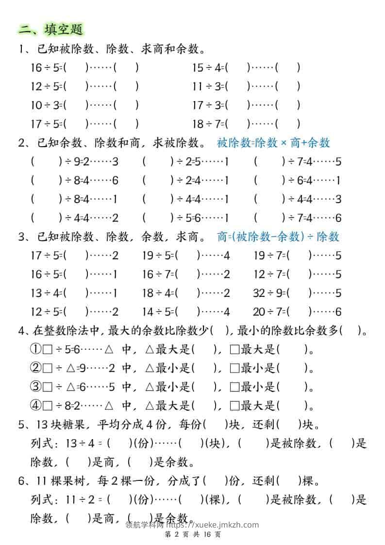 二年级下数学《有余数的除法》常考重点易错专项青禾老师18天前发布关注私信013448 ——预览已结束,还剩12页未读——开通会员后可免费下载高清完整文档 二年级下数学《有余数的除法》常考重点易错专项此内容为付费资源,请付费后查看领航币4.9年度会员免费永久会员免费立即购买您当前未登录!建议登陆后购买,可保存购买订单格式pdf页数14 页大小599.68 KB付费资源© 版权声明 1 本网站名称:领航学科网 2 本站永久网址:https://xueke.jmkzh.com/ 3 本网站的资料都来源于用户投稿,仅供大家学习与参考,如有侵权,请联系站长QQ进行删除处理。 4 本站一切资源不代表本站立场,并不代表本站赞同其观点和对其真实性负责。 5 本站一律禁止以任何方式发布或转载任何违法的相关信息,访客发现请向站长举报! THE END小学数学 喜欢就支持一下吧点赞48 分享QQ空间微博QQ好友海报分享复制链接收藏