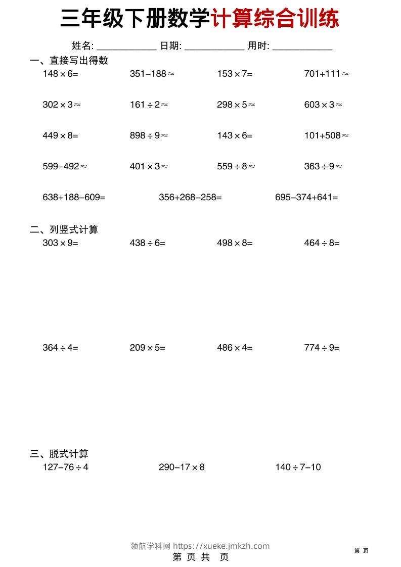 三年级下数学计算综合训练青禾老师16天前发布关注私信059959 ——预览已结束,还剩28页未读——开通会员后可免费下载高清完整文档 三年级下数学计算综合训练此内容为付费资源,请付费后查看领航币4.9年度会员免费永久会员免费立即购买您当前未登录!建议登陆后购买,可保存购买订单格式pdf页数30 页大小134.21 KB付费资源© 版权声明 1 本网站名称:领航学科网 2 本站永久网址:https://xueke.jmkzh.com/ 3 本网站的资料都来源于用户投稿,仅供大家学习与参考,如有侵权,请联系站长QQ进行删除处理。 4 本站一切资源不代表本站立场,并不代表本站赞同其观点和对其真实性负责。 5 本站一律禁止以任何方式发布或转载任何违法的相关信息,访客发现请向站长举报! THE END小学数学 喜欢就支持一下吧点赞59 分享QQ空间微博QQ好友海报分享复制链接收藏