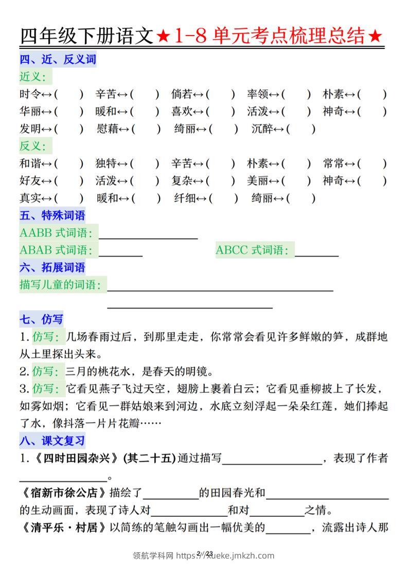 26春四年级下语文1-8单元知识复习要点青禾老师13小时前发布关注私信040778 ——预览已结束,还剩44页未读——开通会员后可免费下载高清完整文档 26春四年级下语文1-8单元知识复习要点此内容为付费资源,请付费后查看领航币4.9年度会员免费永久会员免费立即购买您当前未登录!建议登陆后购买,可保存购买订单格式pdf页数46 页大小23.95 MB付费资源© 版权声明 1 本网站名称:领航学科网 2 本站永久网址:https://xueke.jmkzh.com/ 3 本网站的资料都来源于用户投稿,仅供大家学习与参考,如有侵权,请联系站长QQ进行删除处理。 4 本站一切资源不代表本站立场,并不代表本站赞同其观点和对其真实性负责。 5 本站一律禁止以任何方式发布或转载任何违法的相关信息,访客发现请向站长举报! THE END小学语文 喜欢就支持一下吧点赞78 分享QQ空间微博QQ好友海报分享复制链接收藏
