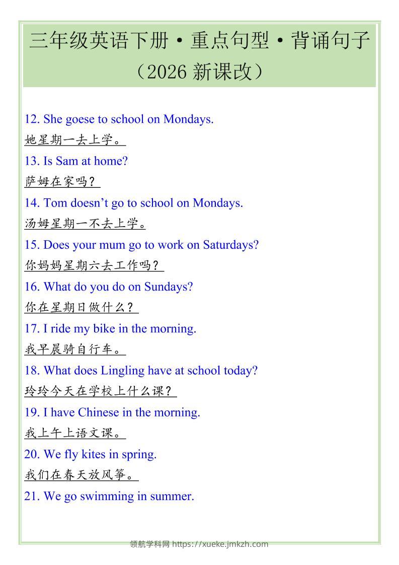 三年级下英语重点句型专项《人教版PEP》青禾老师7小时前发布关注私信063567 ——预览已结束,还剩2页未读——开通会员后可免费下载高清完整文档 三年级下英语重点句型专项《人教版PEP》此内容为付费资源,请付费后查看领航币4.9年度会员免费永久会员免费立即购买您当前未登录!建议登陆后购买,可保存购买订单格式pdf页数4 页大小88.88 KB付费资源© 版权声明 1 本网站名称:领航学科网 2 本站永久网址:https://xueke.jmkzh.com/ 3 本网站的资料都来源于用户投稿,仅供大家学习与参考,如有侵权,请联系站长QQ进行删除处理。 4 本站一切资源不代表本站立场,并不代表本站赞同其观点和对其真实性负责。 5 本站一律禁止以任何方式发布或转载任何违法的相关信息,访客发现请向站长举报! THE END小学英语 喜欢就支持一下吧点赞67 分享QQ空间微博QQ好友海报分享复制链接收藏