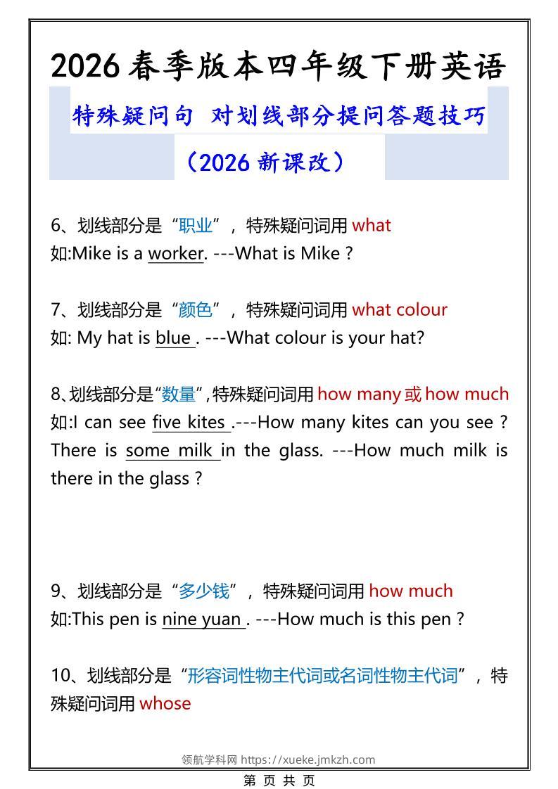 2026春新版四年级下英语特殊疑问句答题技巧青禾老师13小时前发布关注私信010035 ——预览已结束,还剩1页未读——开通会员后可免费下载高清完整文档 2026春新版四年级下英语特殊疑问句答题技巧此内容为付费资源,请付费后查看领航币4.9年度会员免费永久会员免费立即购买您当前未登录!建议登陆后购买,可保存购买订单格式pdf页数3 页大小68.52 KB付费资源© 版权声明 1 本网站名称:领航学科网 2 本站永久网址:https://xueke.jmkzh.com/ 3 本网站的资料都来源于用户投稿,仅供大家学习与参考,如有侵权,请联系站长QQ进行删除处理。 4 本站一切资源不代表本站立场,并不代表本站赞同其观点和对其真实性负责。 5 本站一律禁止以任何方式发布或转载任何违法的相关信息,访客发现请向站长举报! THE END小学英语 喜欢就支持一下吧点赞5 分享QQ空间微博QQ好友海报分享复制链接收藏