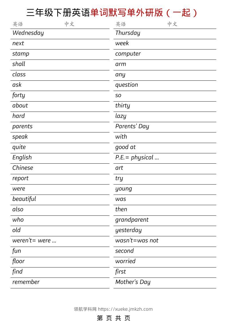 三年级下英语全册单词默写单《外研版(一起)》青禾老师13小时前发布关注私信085876 ——预览已结束,还剩4页未读——开通会员后可免费下载高清完整文档 三年级下英语全册单词默写单《外研版(一起)》此内容为付费资源,请付费后查看领航币4.9年度会员免费永久会员免费立即购买您当前未登录!建议登陆后购买,可保存购买订单格式pdf页数6 页大小1.17 MB付费资源© 版权声明 1 本网站名称:领航学科网 2 本站永久网址:https://xueke.jmkzh.com/ 3 本网站的资料都来源于用户投稿,仅供大家学习与参考,如有侵权,请联系站长QQ进行删除处理。 4 本站一切资源不代表本站立场,并不代表本站赞同其观点和对其真实性负责。 5 本站一律禁止以任何方式发布或转载任何违法的相关信息,访客发现请向站长举报! THE END小学英语 喜欢就支持一下吧点赞76 分享QQ空间微博QQ好友海报分享复制链接收藏