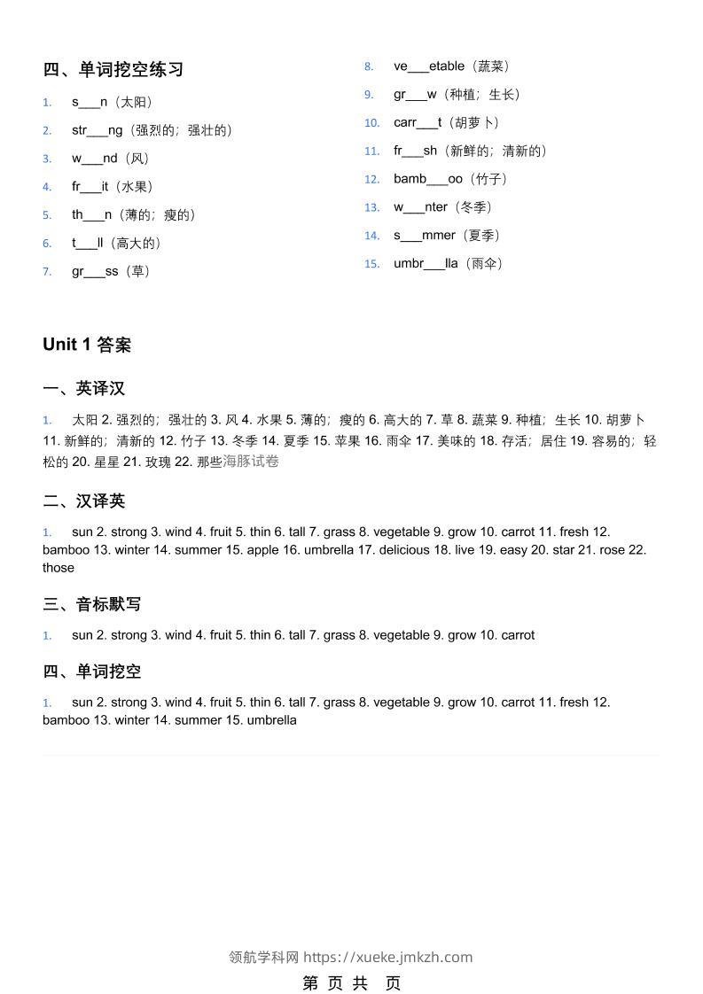 四年级下英语单词默写表(英译汉、汉译英、音标默写、单词挖空)《教科版》青禾老师5天前发布关注私信026264 ——预览已结束,还剩14页未读——开通会员后可免费下载高清完整文档 四年级下英语单词默写表(英译汉、汉译英、音标默写、单词挖空)《教科版》此内容为付费资源,请付费后查看领航币4.9年度会员免费永久会员免费立即购买您当前未登录!建议登陆后购买,可保存购买订单格式pdf页数16 页大小433.63 KB付费资源© 版权声明 1 本网站名称:领航学科网 2 本站永久网址:https://xueke.jmkzh.com/ 3 本网站的资料都来源于用户投稿,仅供大家学习与参考,如有侵权,请联系站长QQ进行删除处理。 4 本站一切资源不代表本站立场,并不代表本站赞同其观点和对其真实性负责。 5 本站一律禁止以任何方式发布或转载任何违法的相关信息,访客发现请向站长举报! THE END小学英语 喜欢就支持一下吧点赞64 分享QQ空间微博QQ好友海报分享复制链接收藏