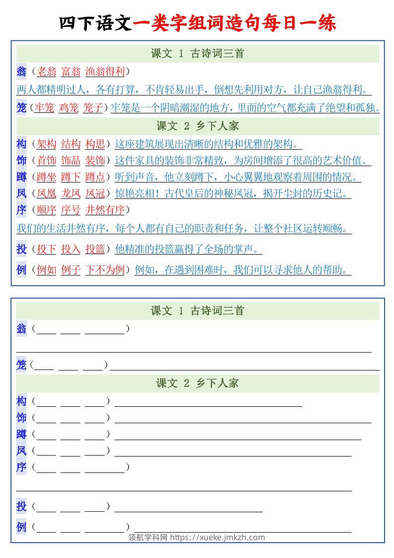 四年级下语文一类字组词造句每日一练22页青禾老师3天前发布关注私信098893 ——预览已结束,还剩20页未读——开通会员后可免费下载高清完整文档 四年级下语文一类字组词造句每日一练22页此内容为付费资源,请付费后查看领航币4.9年度会员免费永久会员免费立即购买您当前未登录!建议登陆后购买,可保存购买订单格式pdf页数22 页大小655.39 KB付费资源© 版权声明 1 本网站名称:领航学科网 2 本站永久网址:https://xueke.jmkzh.com/ 3 本网站的资料都来源于用户投稿,仅供大家学习与参考,如有侵权,请联系站长QQ进行删除处理。 4 本站一切资源不代表本站立场,并不代表本站赞同其观点和对其真实性负责。 5 本站一律禁止以任何方式发布或转载任何违法的相关信息,访客发现请向站长举报! THE END小学语文 喜欢就支持一下吧点赞93 分享QQ空间微博QQ好友海报分享复制链接收藏