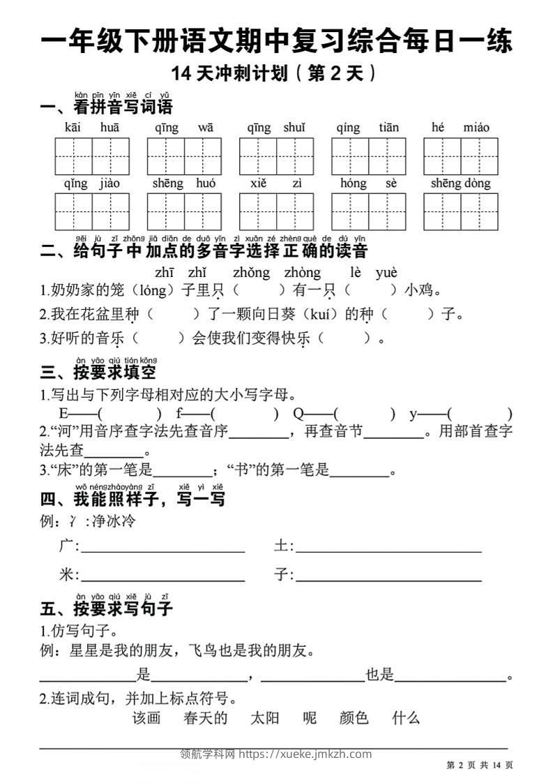 一年级下语文期中复习14天冲刺计划青禾老师2小时前发布关注私信034836 ——预览已结束,还剩21页未读——开通会员后可免费下载高清完整文档 一年级下语文期中复习14天冲刺计划此内容为付费资源,请付费后查看领航币4.9年度会员免费永久会员免费立即购买您当前未登录!建议登陆后购买,可保存购买订单格式pdf页数23 页大小7.92 MB付费资源© 版权声明 1 本网站名称:领航学科网 2 本站永久网址:https://xueke.jmkzh.com/ 3 本网站的资料都来源于用户投稿,仅供大家学习与参考,如有侵权,请联系站长QQ进行删除处理。 4 本站一切资源不代表本站立场,并不代表本站赞同其观点和对其真实性负责。 5 本站一律禁止以任何方式发布或转载任何违法的相关信息,访客发现请向站长举报! THE END小学语文 喜欢就支持一下吧点赞36 分享QQ空间微博QQ好友海报分享复制链接收藏