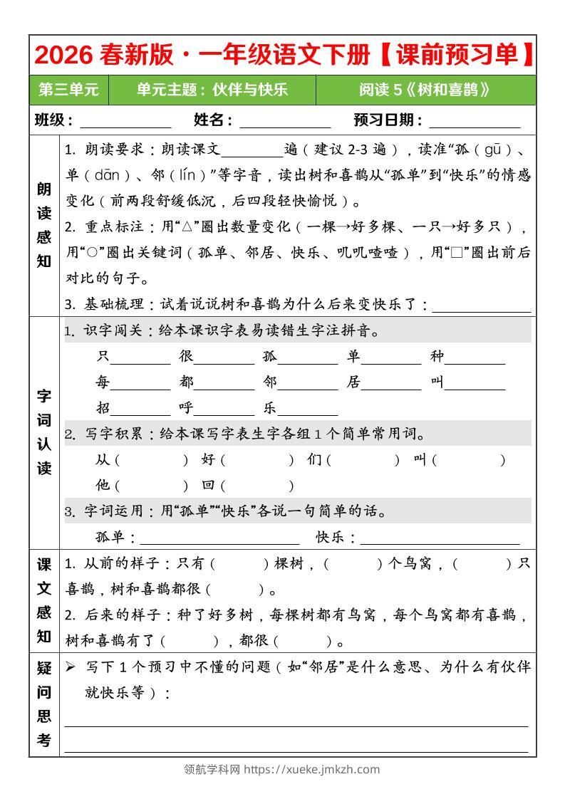 一年级下语文26春第三单元课前预习单青禾老师7小时前发布关注私信019755 ——预览已结束,还剩2页未读——开通会员后可免费下载高清完整文档 一年级下语文26春第三单元课前预习单此内容为付费资源,请付费后查看领航币4.9年度会员免费永久会员免费立即购买您当前未登录!建议登陆后购买,可保存购买订单格式pdf页数4 页大小436.15 KB付费资源© 版权声明 1 本网站名称:领航学科网 2 本站永久网址:https://xueke.jmkzh.com/ 3 本网站的资料都来源于用户投稿,仅供大家学习与参考,如有侵权,请联系站长QQ进行删除处理。 4 本站一切资源不代表本站立场,并不代表本站赞同其观点和对其真实性负责。 5 本站一律禁止以任何方式发布或转载任何违法的相关信息,访客发现请向站长举报! THE END小学语文 喜欢就支持一下吧点赞55 分享QQ空间微博QQ好友海报分享复制链接收藏